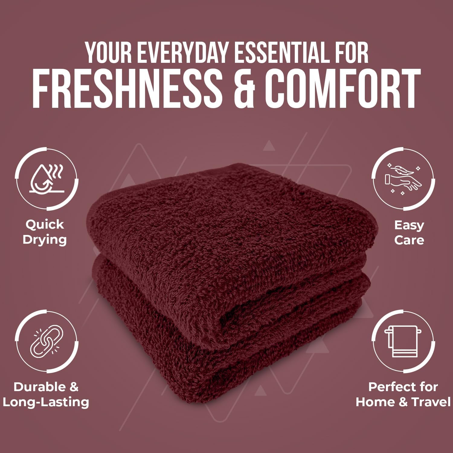 DAN RIVER 100% Cotton Wash Cloths 24 Pack [12x12] Soft & Absorbent wash Cloths for Your face, Gym, Hotels & Spa Perfect for Everyday Use Fingertip Towels, Pomegranate