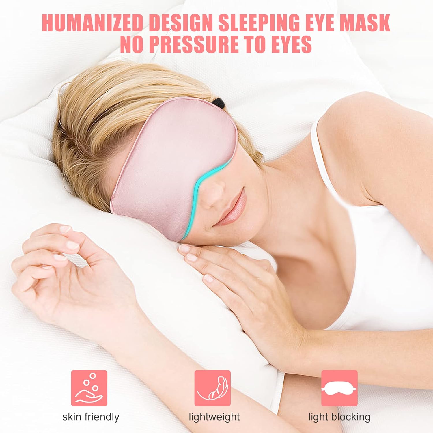 Cooling Eye Mask for Sleeping, Silk Sleep Mask w/Gel Eye Mask, Heated Eye Masks, Blindfold Eye Cover Women Sleeping Mask for Home, Office, Travel, Yoga, Medditation, Stocking Stuffers(Pink)