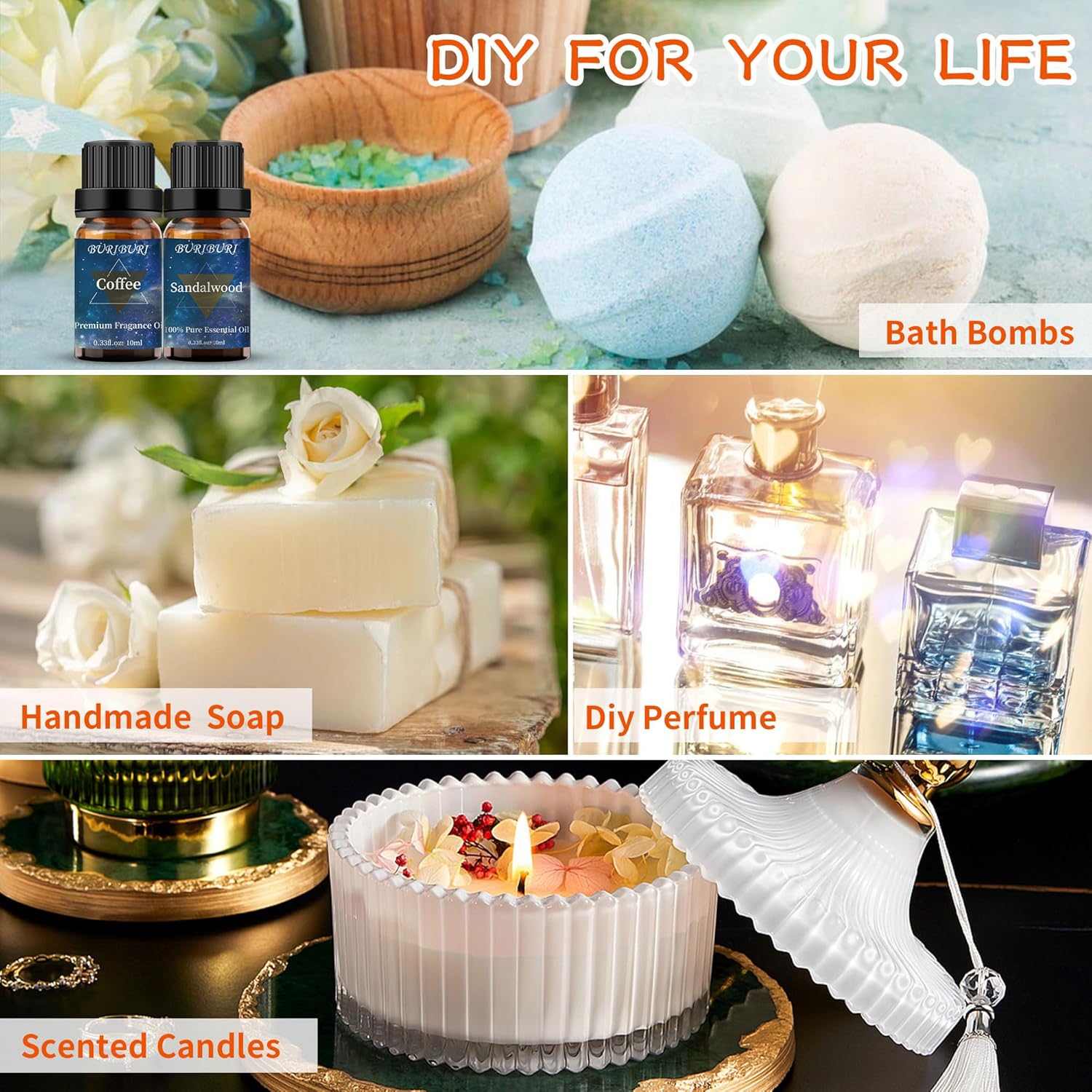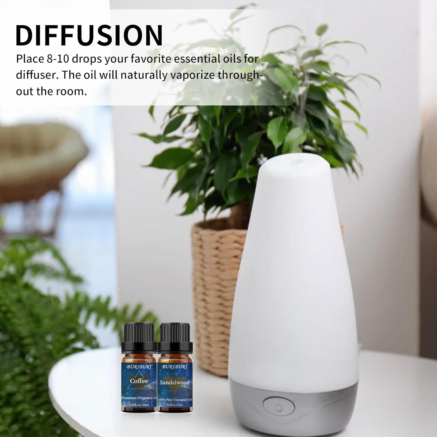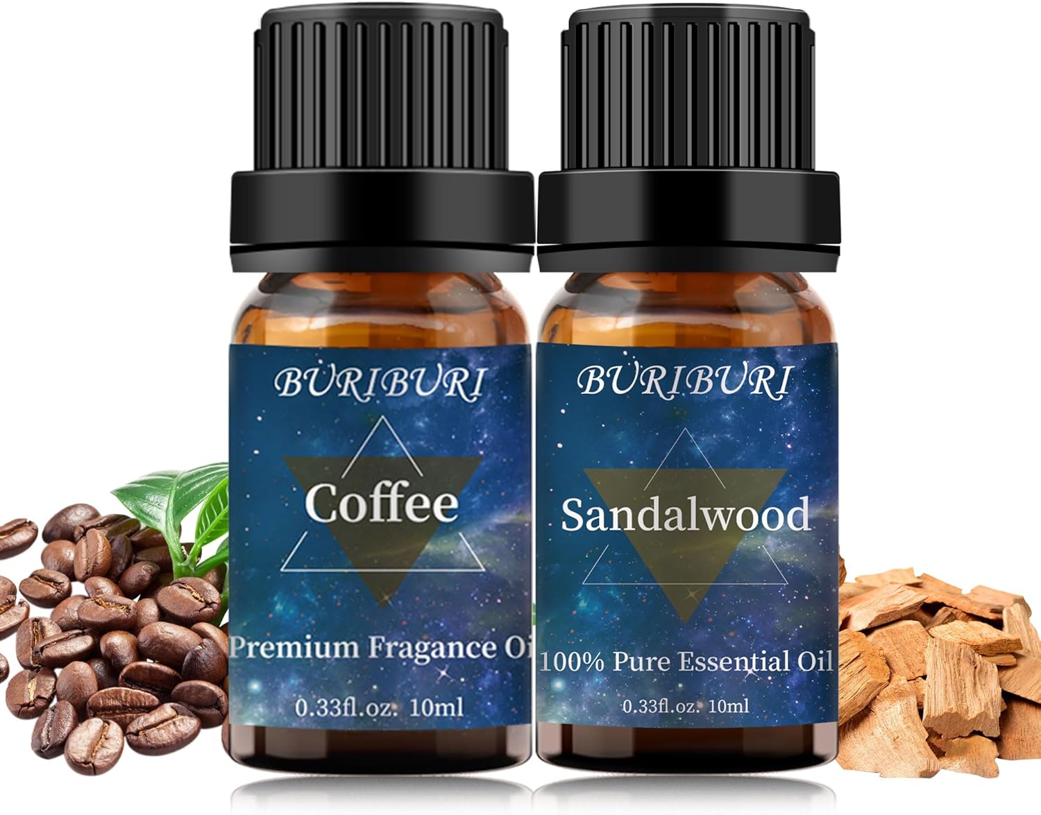 - Packing Includes: 10ml Coffee Oil x1, 10ml Sandalwood Oil x1. With no adulterants or dilution, BURIBURI natural scented oil is bottled in a durable amber glass bottle.