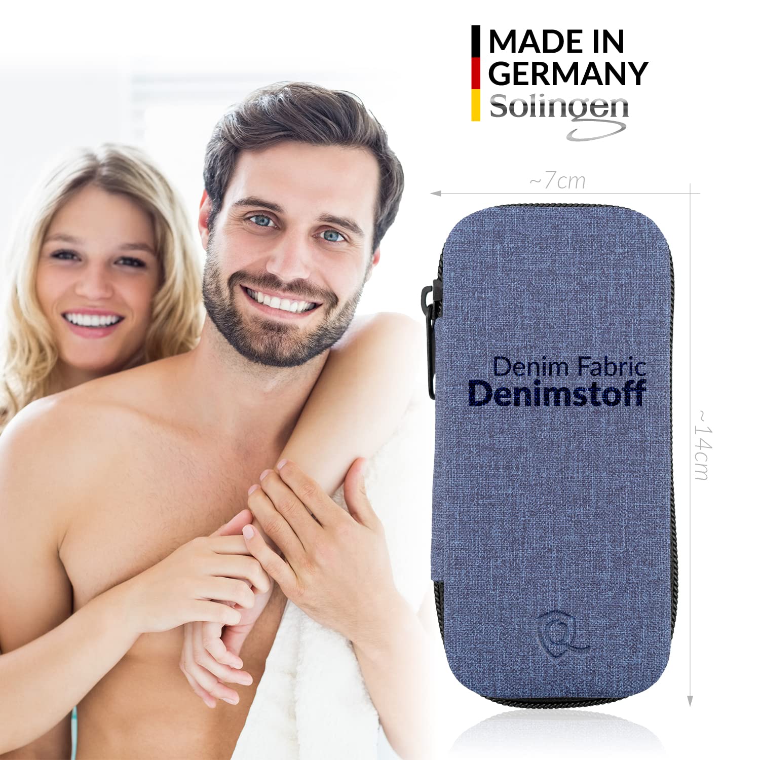 Manicure Set Solingen Made in Germany - 7 Piece Exclusive Finger & Toe Nail Clippers Kit for Women and Men in Vegan Leather Case, Color Jeans