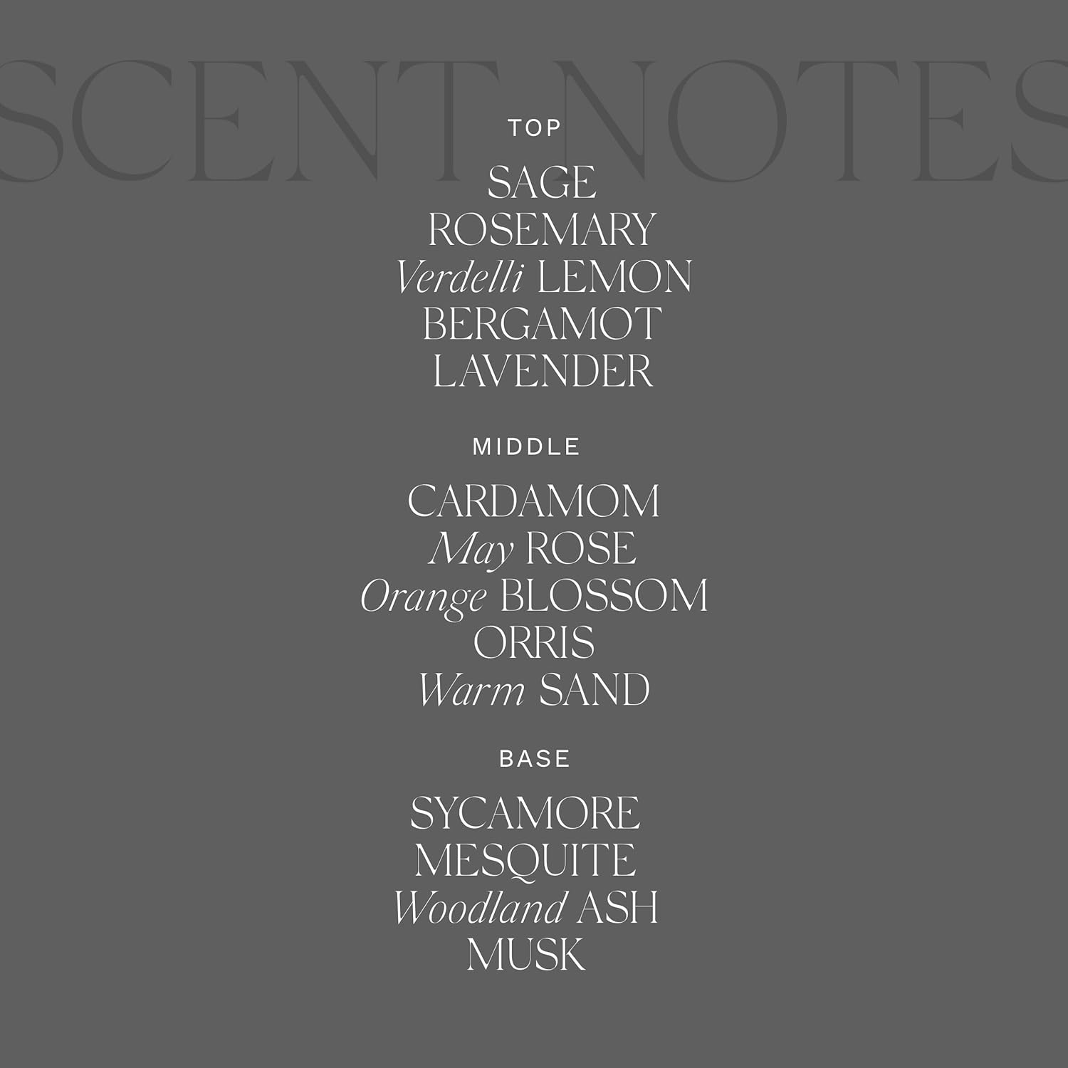 - An Arid Escape: An accord of woodland ash, may rose and musk evoke sun-drenched sands dotted with wildflowers, grounded by the minerality of heated rocks, dusty tumbleweeds and barren woods