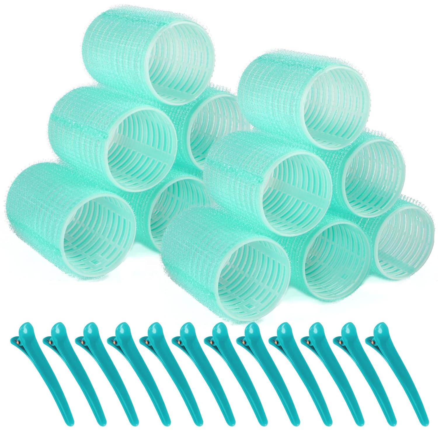 12 Piece Hair Roller Set with Clips, Self Grip Hair Rollers Hair Curler for Long Medium Short Hair, Random Color (3.6cm)