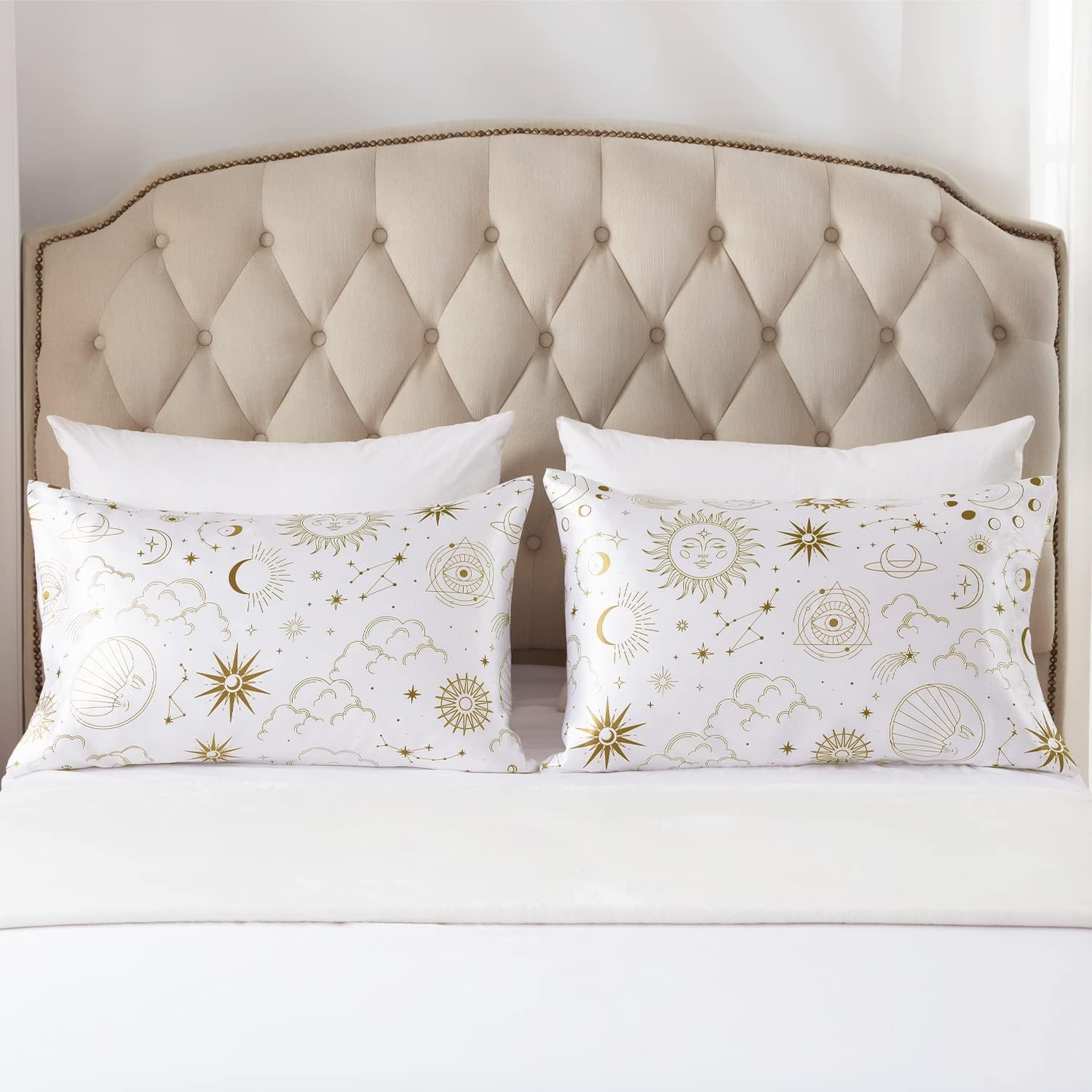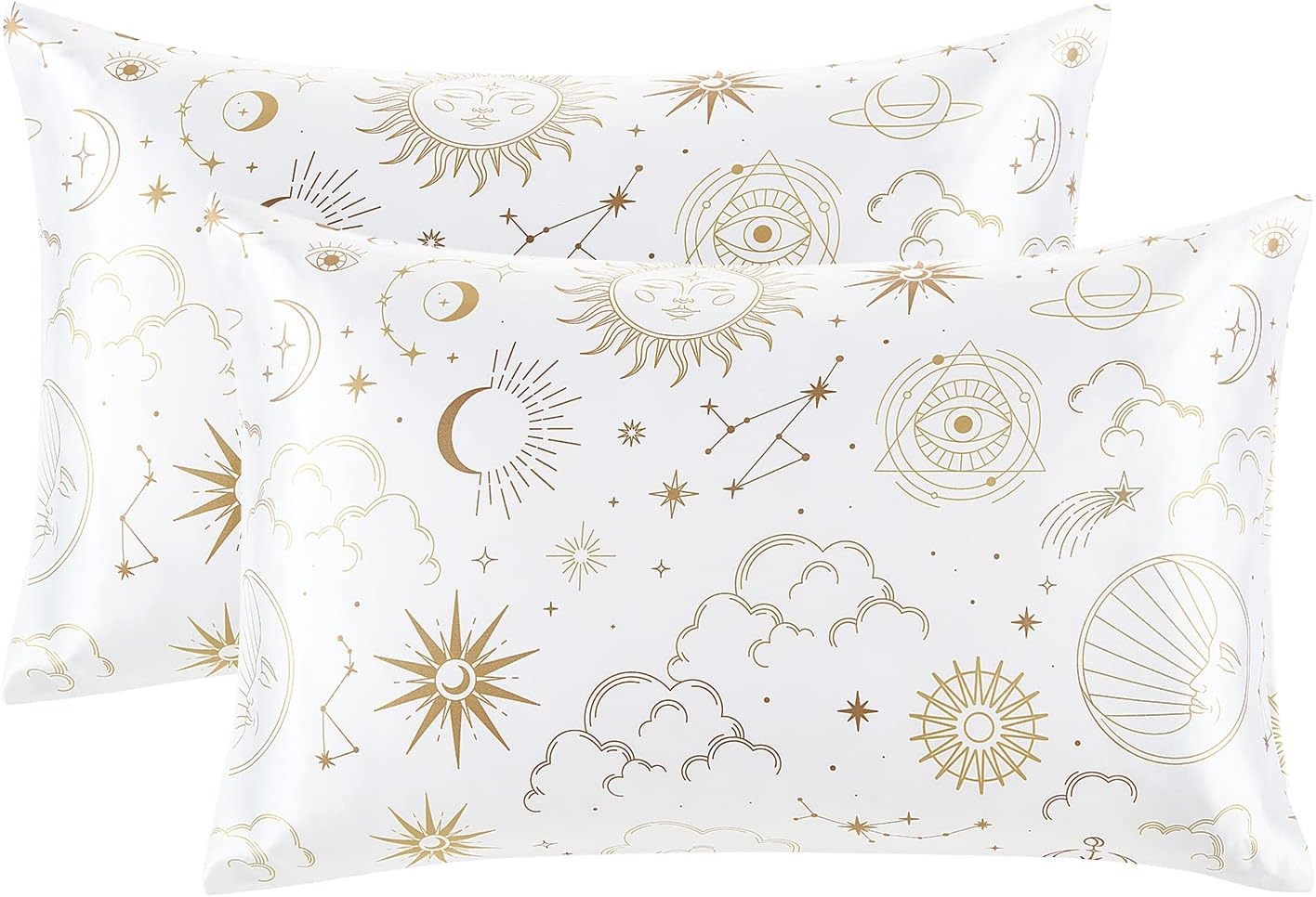 EXQ Home Silky Satin Pillowcase for Hair and Skin,Printed Pillow Cases Standard Size Set of 2 Pink Satin Pillow Case 2 Pack with Envelope Closure( White Moon,20"x26")