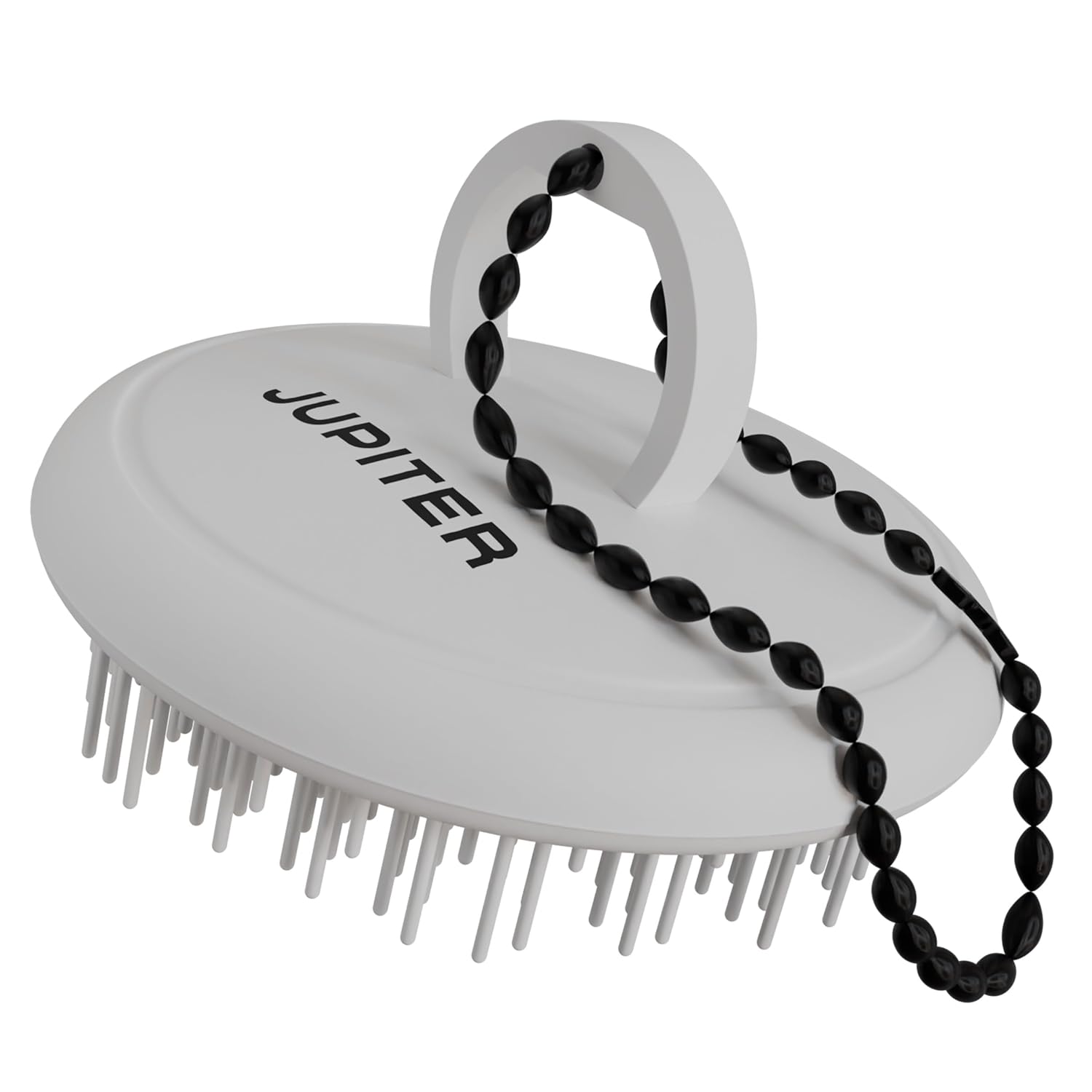 Jupiter Scalp Exfoliator - Scalp Massager Tool for Wet & Dry Hair - Ergonomic Detangler Brush - Dandruff Comb & Scrub to Remove Dandruff & Buildup and Support Circulation - White