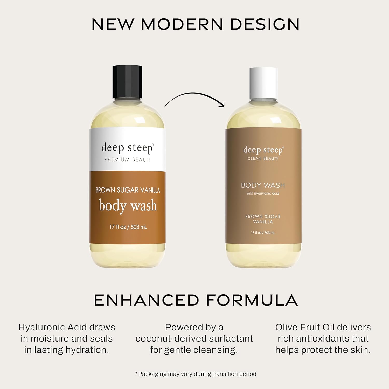 Deep Steep Body Wash, Brown Sugar Vanilla, 17 oz – Hydrating Shower Gel with Hyaluronic Acid, Shea Butter, Aloe Vera & Argan Oil – Vegan, Clean Beauty, Clean & Refreshed Skin