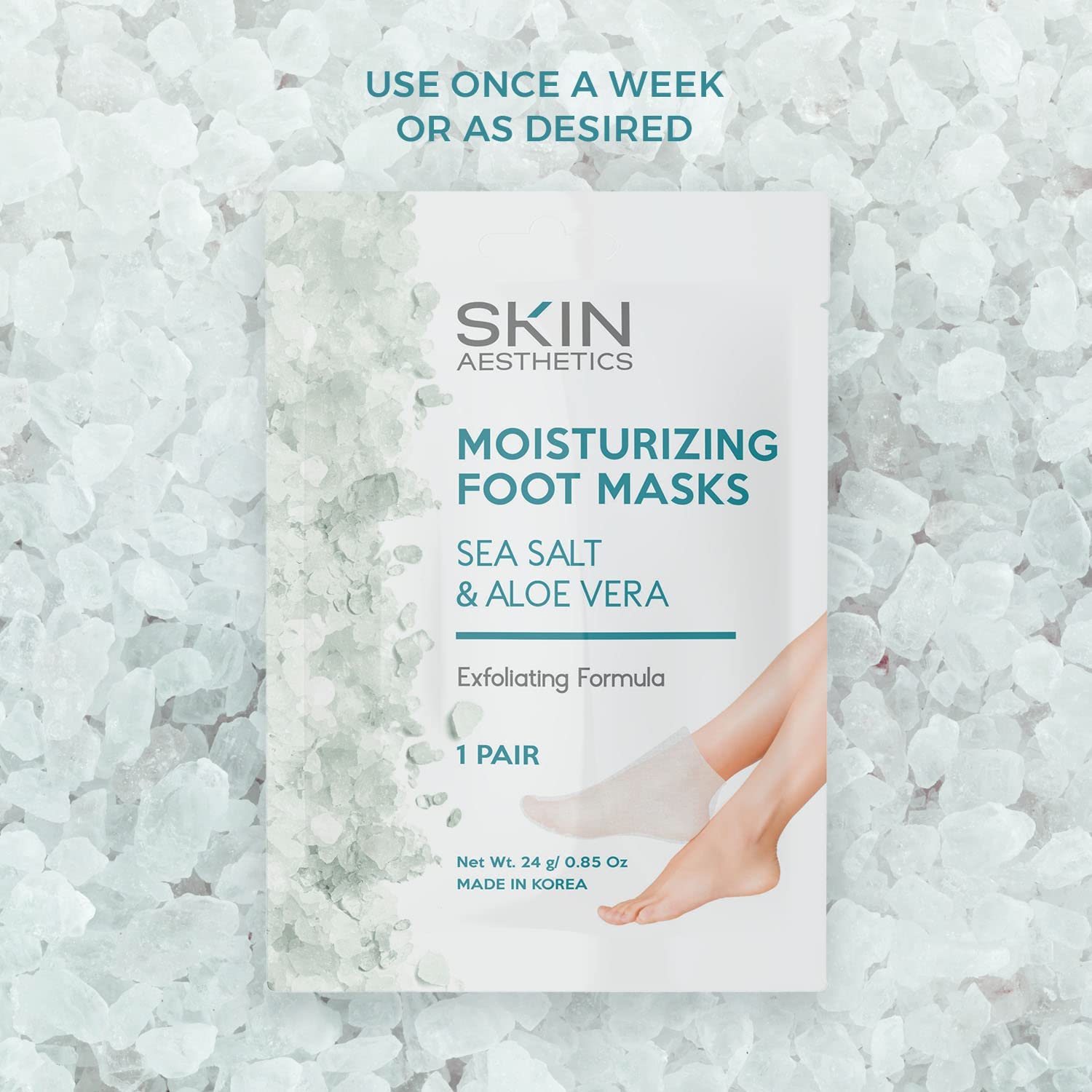 Sea Salt & Aloe Foot Masks - Moisturizes & Exfoliates Dry, Cracked Feet, Hydrating Foot Mask - Dermatologist Tested Korean Skincare - Clean Beauty, Cruelty-Free - 3 Pairs