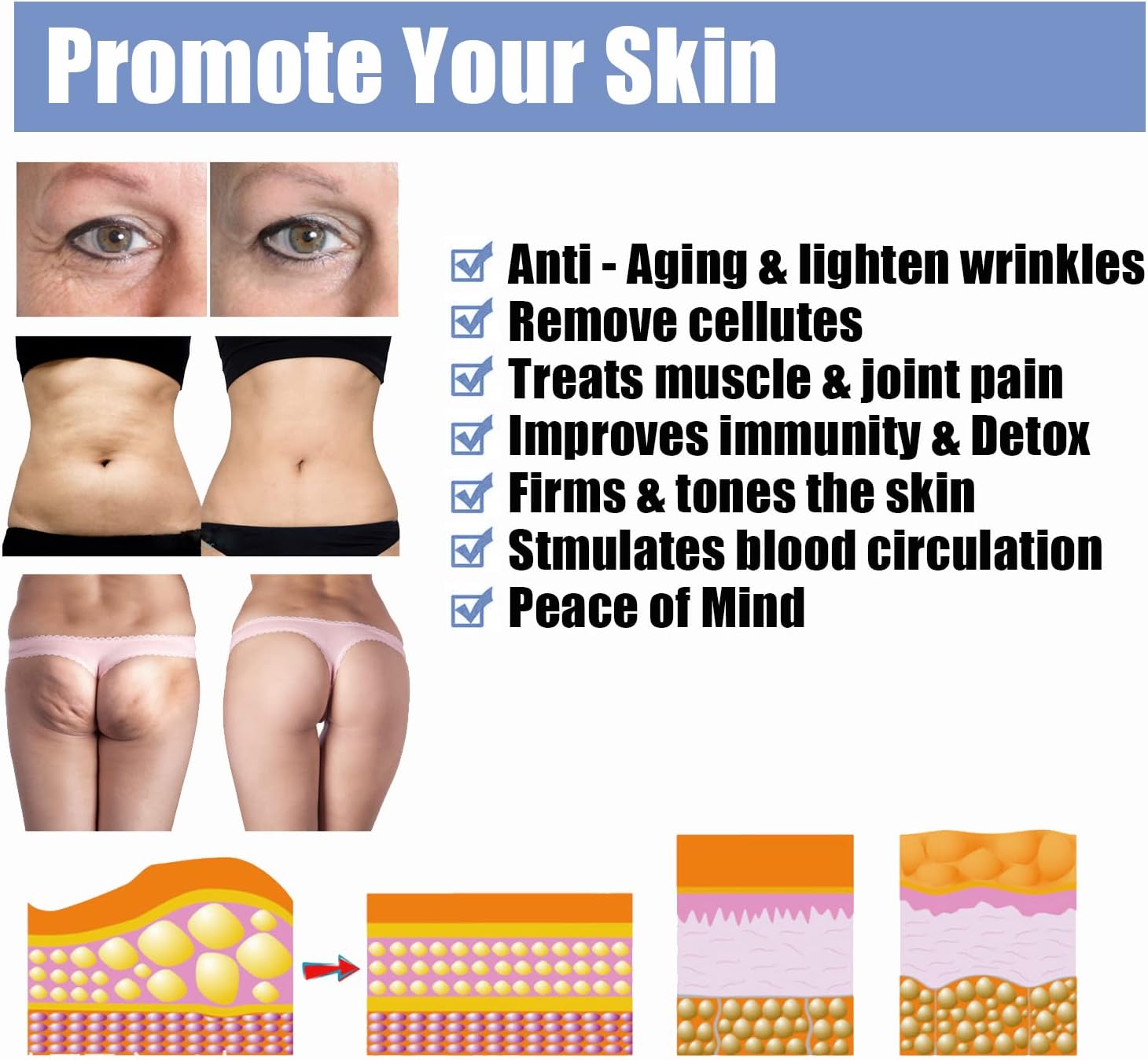 - 【Promotes Skin】- Cupping massage is able to smooth out fine lines and wrinkles, firm the skin.Facial cupping set can reduce wrinkles under eyes, forehead, around the mouth, and chin. Your legs, belly, and butt will feel tighter with using the body cupping set.