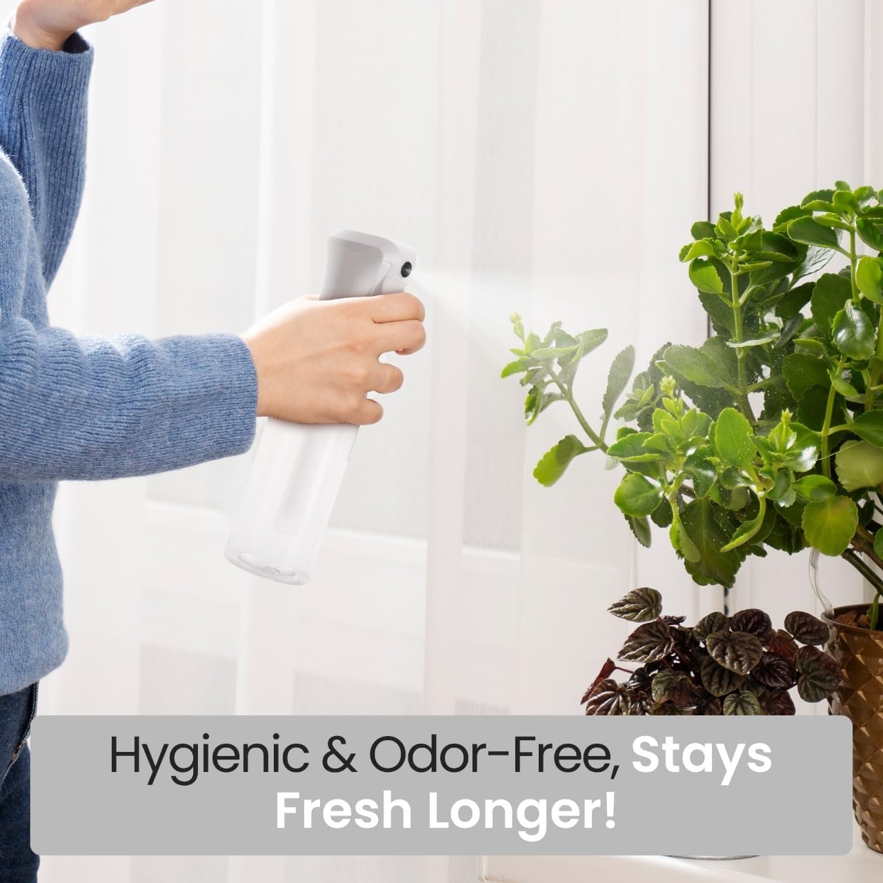 - 360° Fine Mist Sprayer: Easily reach every angle with our continuous spray bottle. Just a gentle squeeze releases a smooth, long-lasting mist—perfect for evenly coating hair, plants, or surfaces.