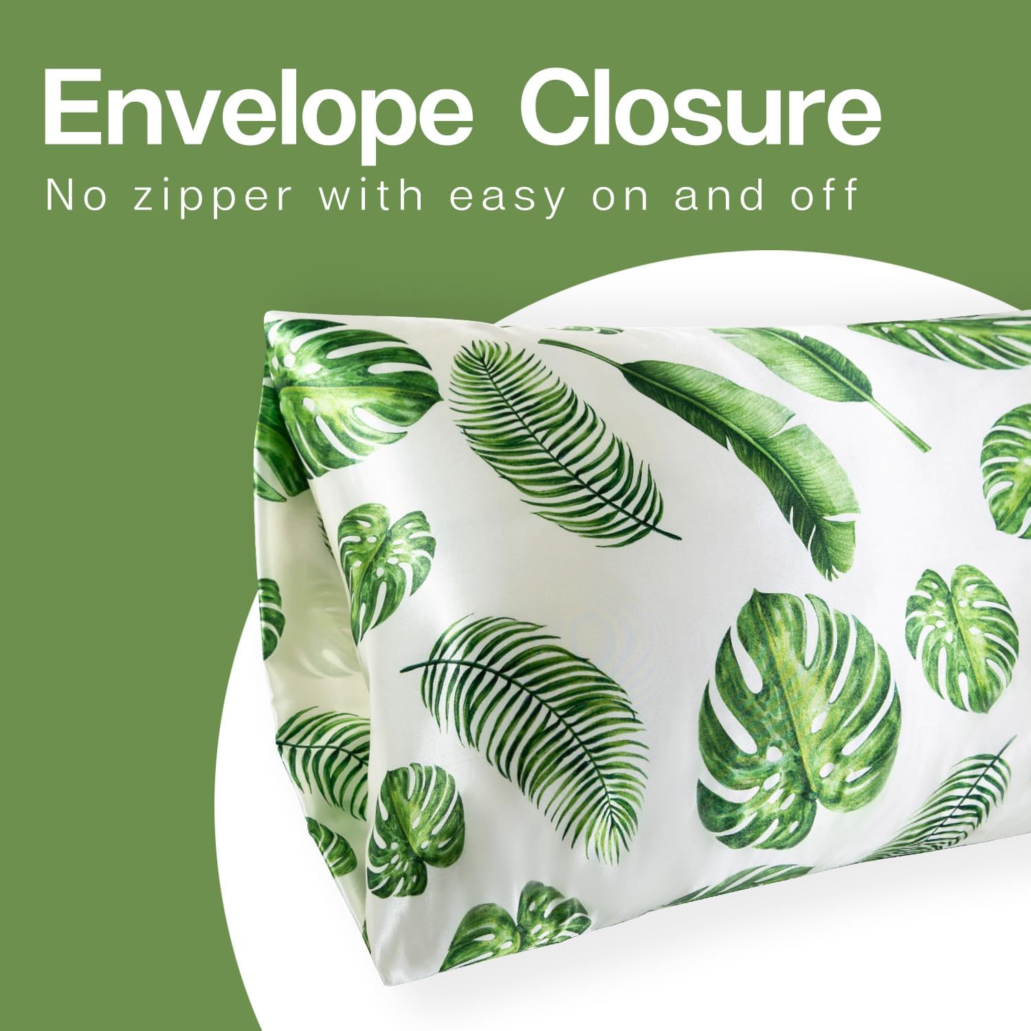 MR&HM Satin Pillowcase for Hair and Skin, Silk Satin Pillowcase 2 Pack, King Size Pillow Cases Set of 2, Silky Pillow Cover with Envelope Closure (20x40, Leaves)