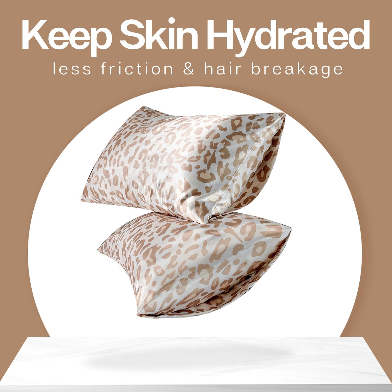 MR&HM Satin Pillowcase for Hair and Skin, Silk Satin Pillowcase 2 Pack, Standard Size Pillow Cases Set of 2, Silky Pillow Cover with Envelope Closure (20x26, Champagne Leopard)