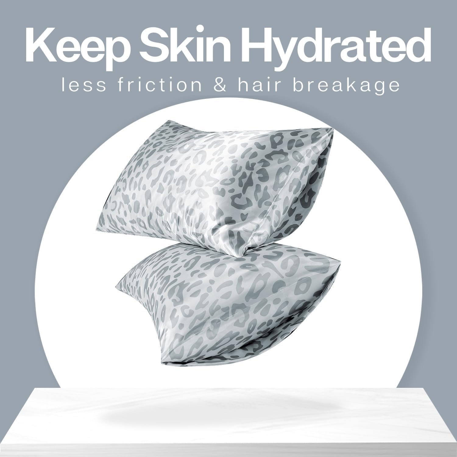 MR&HM Satin Pillowcase for Hair and Skin, Silk Satin Pillowcase 2 Pack, King Size Pillow Cases Set of 2, Silky Pillow Cover with Envelope Closure (20x36, Silver Leopard)