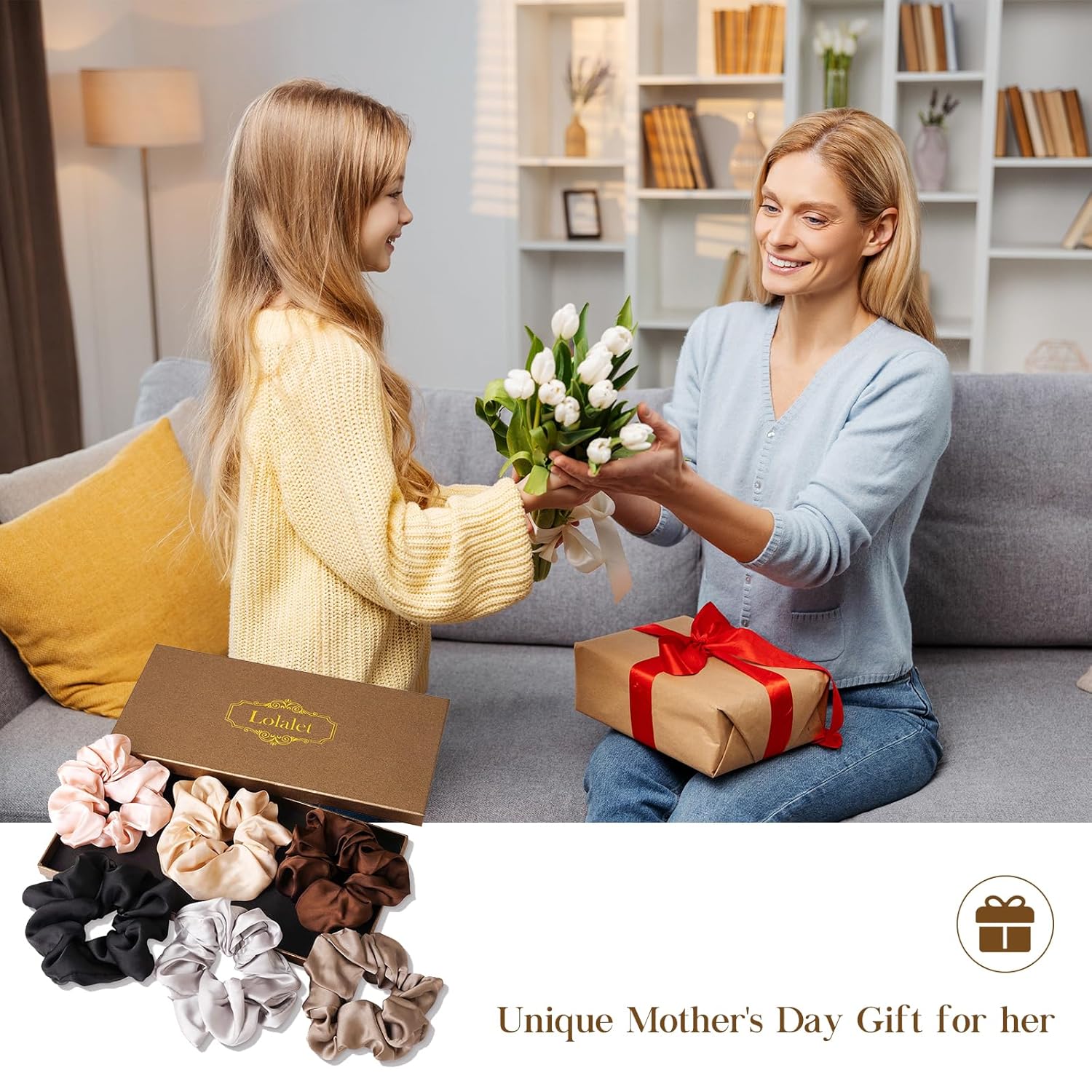 Lolalet Scrunchies for Women, Satin Hair Softer Than Silk Ties Sleep, Big Scrunchy Ponytail Holder with Elastic Bands Girls Thick Thin Curly -6 Pack, Style A