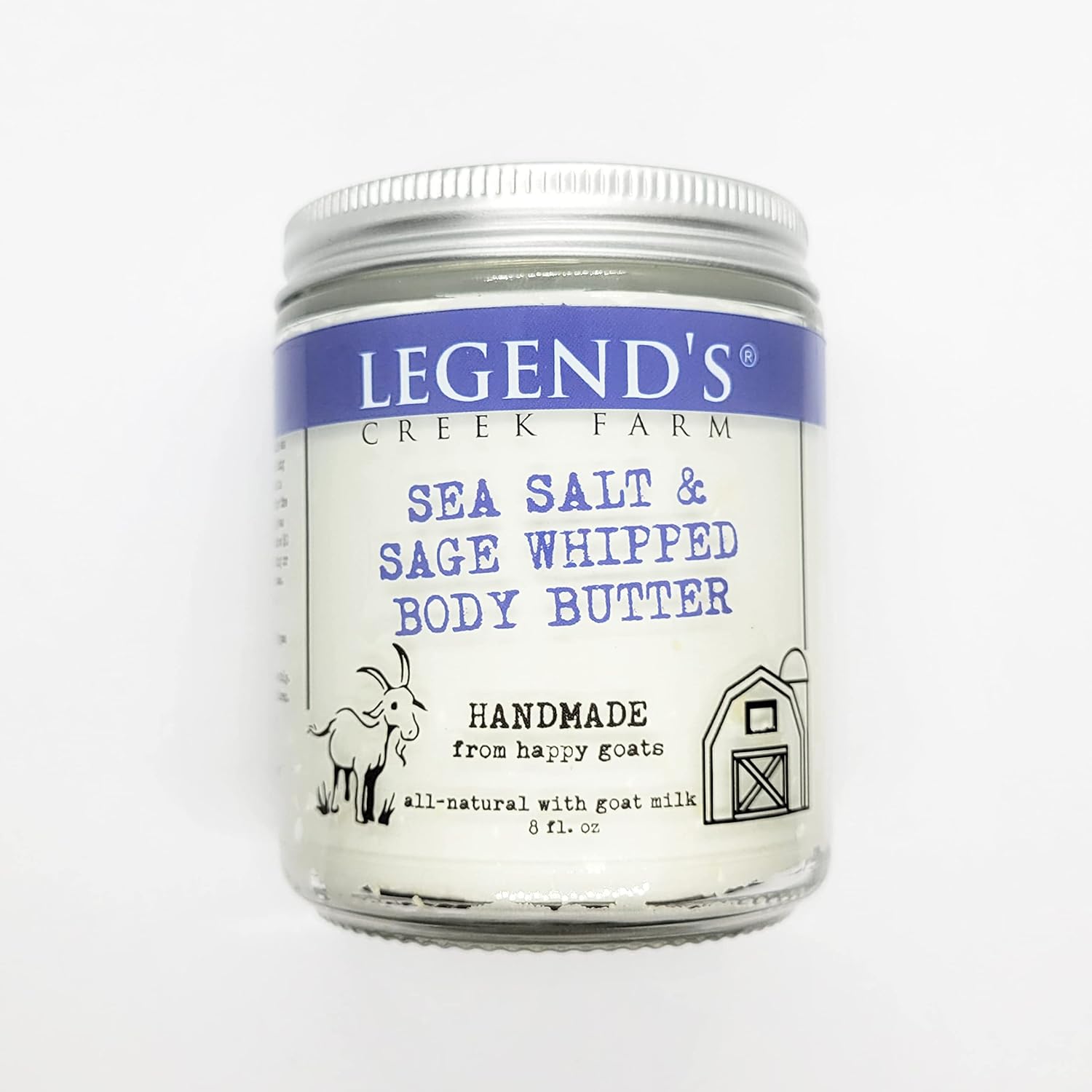 Legend's Creek Farm, Goat Milk Body Butter - Hydrating Natural Body Moisturizer with Organic Shea Butter & Grape Seed Oil - 8 Oz Purifying & Toning Whipped Body Butter (Sea Salt & Sage)