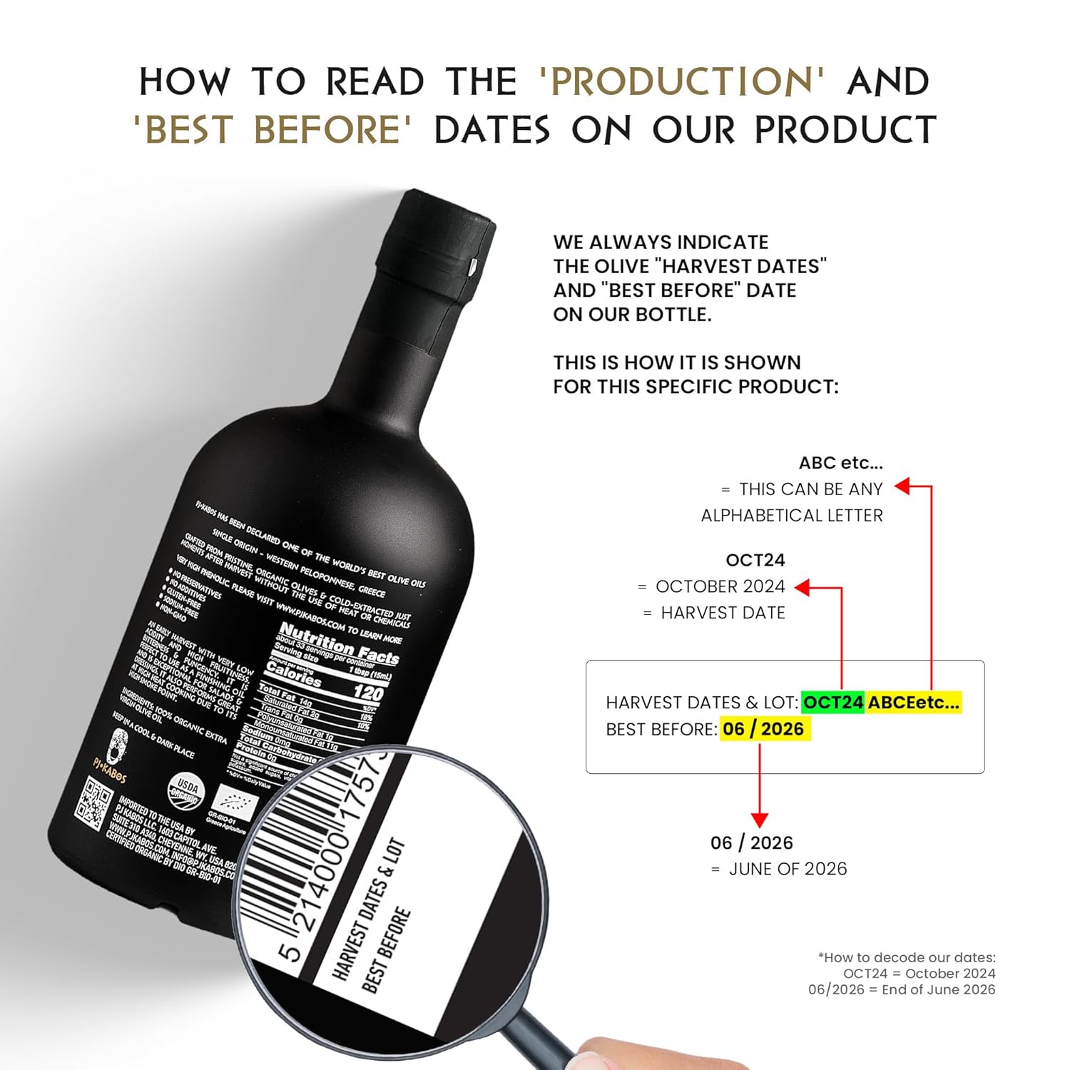 - The Real Deal – Ingredients: 100% Certified Organic Greek Extra Virgin Olive Oil of Single Origin | Ancient Olympia Vicinity (north of Kalamata) | Cold-Extracted | No Additives | Natural Juice | Unrefined | Olympia & Koroneiki Tree Variety | Non-GMO | BPA-Free | No Chemical Farming Residues | No Chemicals | USDA Organic, Kosher. Very high smoke point of over 400°F.