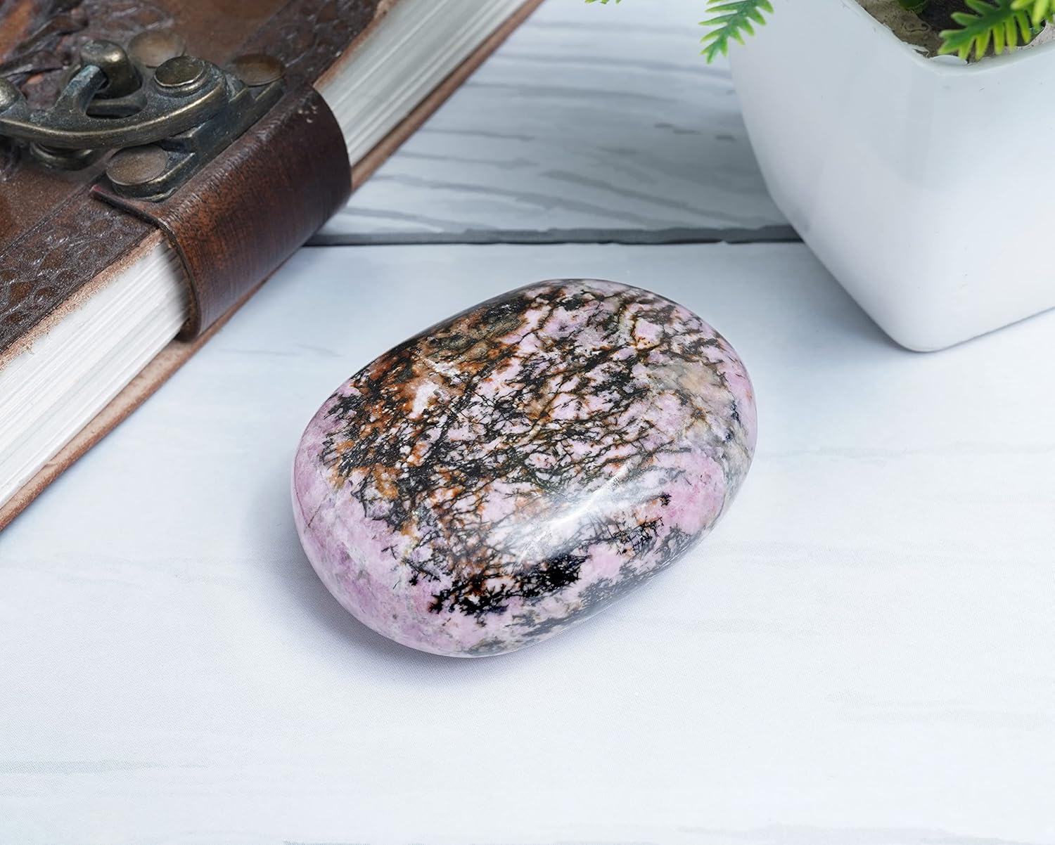 Crocon 50mm Rhodonite Large Palm Stone 900+ Carats Pocket Worry Stones for Natural Chakra Balancing Reiki Healing Stones and Crystal Healing Spa Crystals Gifts for Women