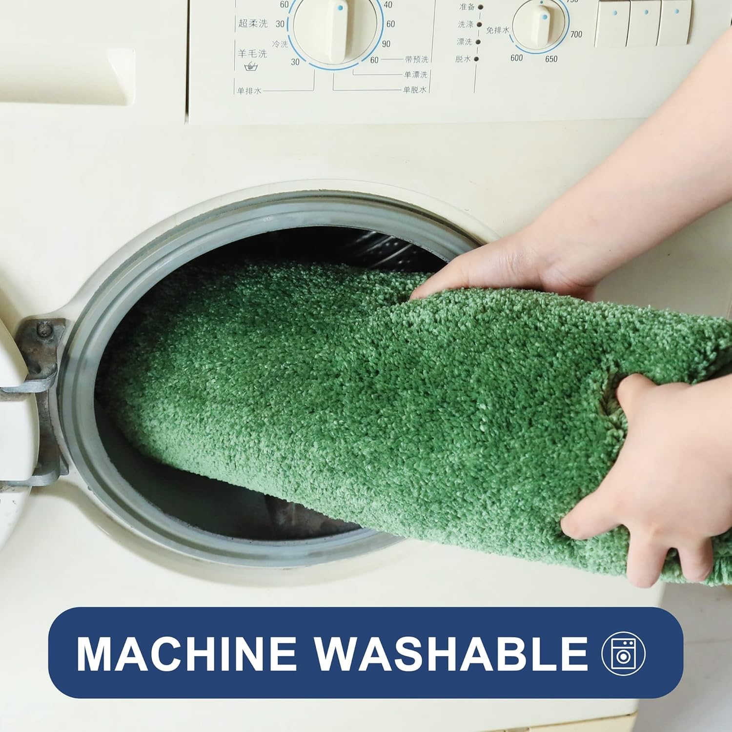 COSY HOMEER Bath Rugs for Bathroom Extra Thick- Anti-Slip Bath Mats Soft Plush Yarn Shaggy 100% Strong Mirco Polyeste Mat Living Room Bedroom Mat Floor Water Absorbent(Green,24x48 - Inches)