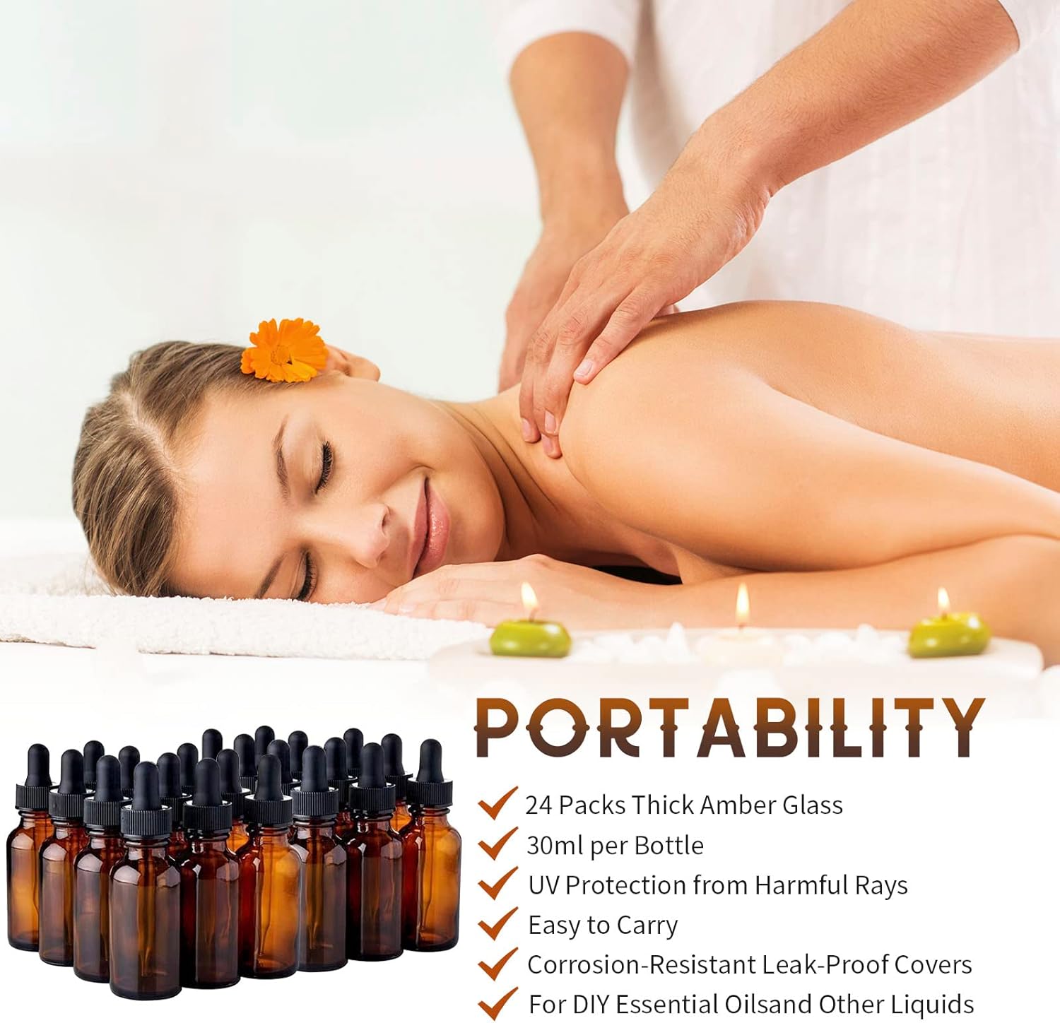 - 【Package Includes】24 pack 1 oz amber glass eye dropper bottles, each empty glass bottle comes with a graduated eye dropper, allowing you to efficiently organize and store all your essentials. The bottles are packed in mesh dividers and heavy cartons to prevent damage in transit.