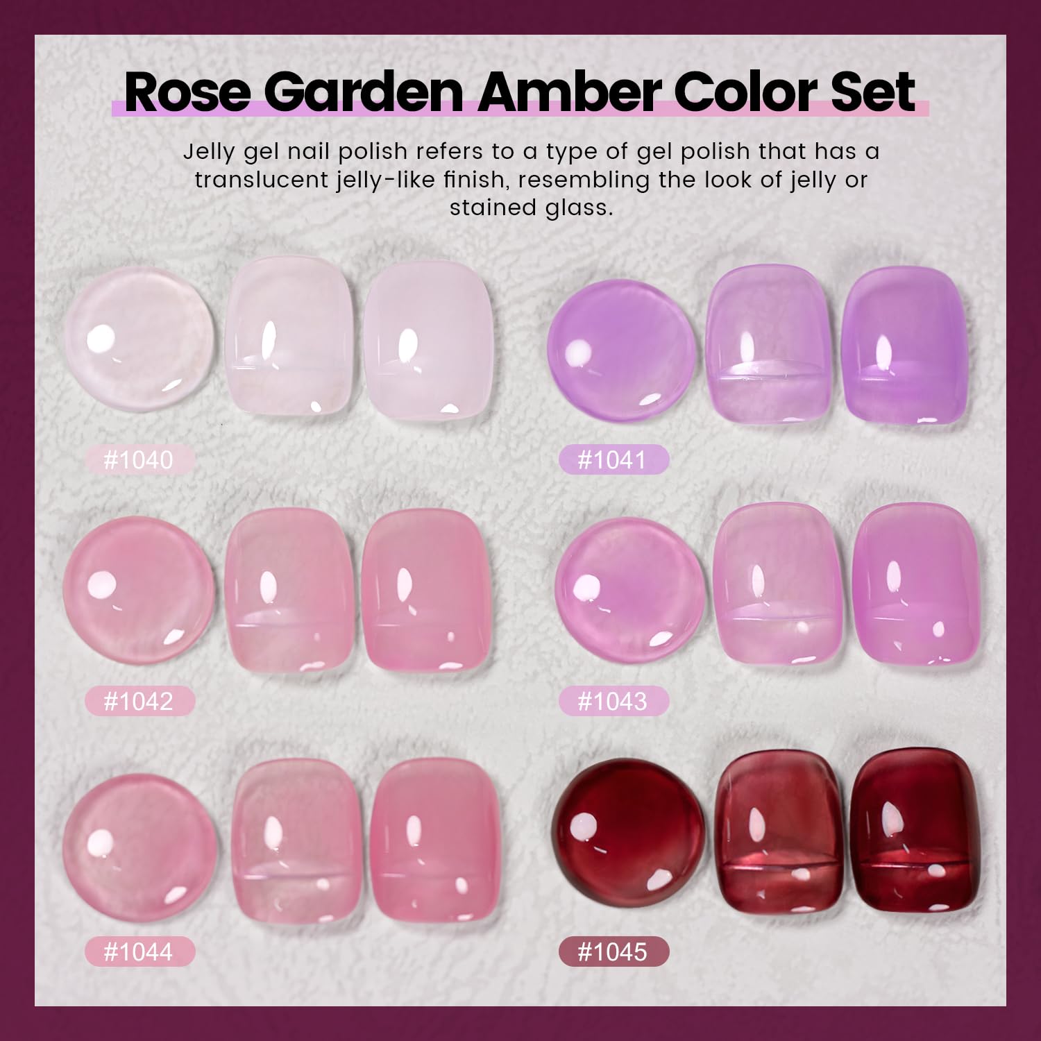 - 6PCS PURPLE PINK COLLECTION:The set will likely include a variety of purple pink shades like light purple pink.Clear nails are slightly translucent, you'll be dizzy with delight wearing this jelly gel nail polish.Apply one layer,two layers and three layers can get different effects