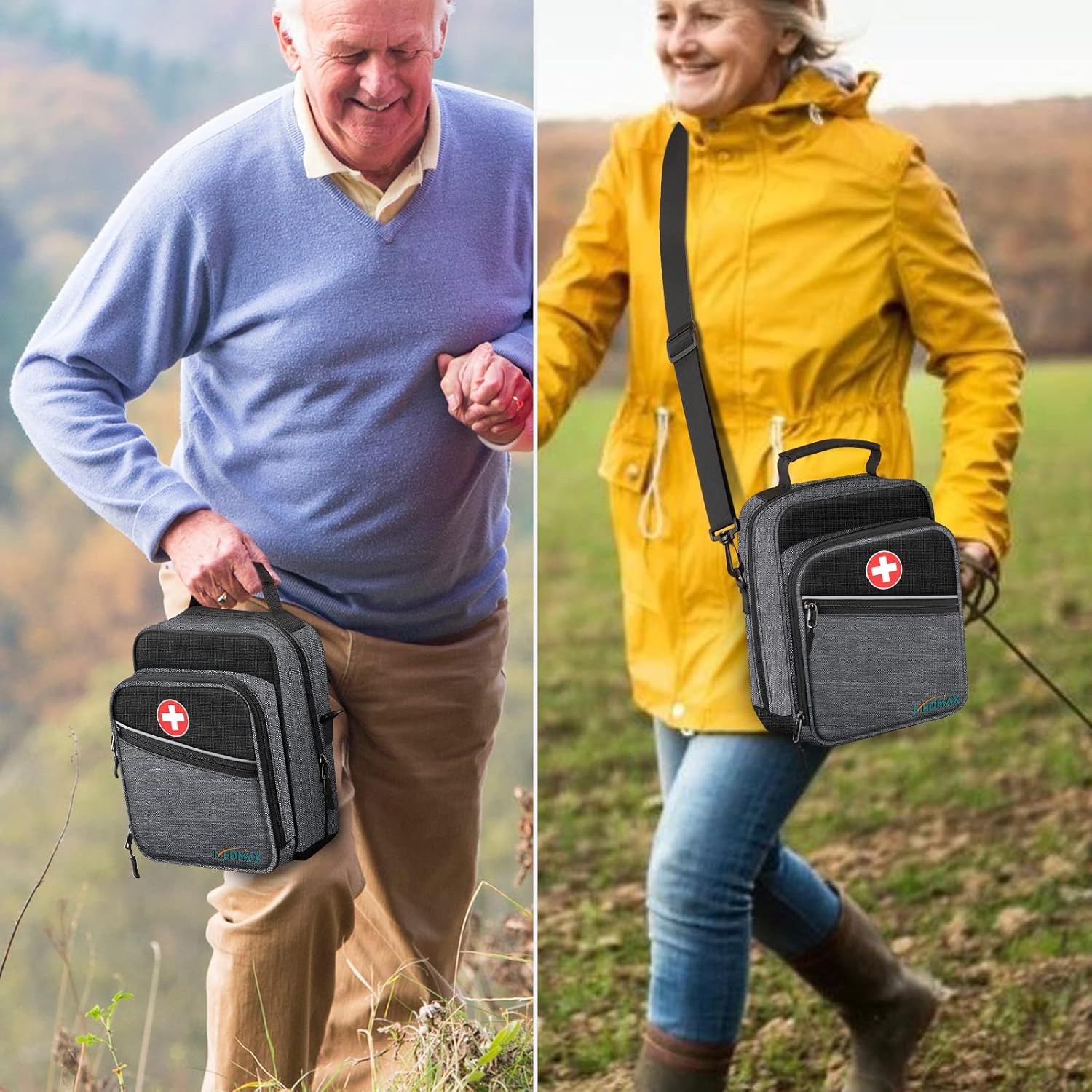 - 【Travel Friendly】Come with portable hand strap and detachable & adjustable shoulder strap, prepared for all situations and go anywhere without worry, perfectly portable and convenient. With premium YKK zipper, this compact medicine carrying case is durable and secure for quickly access. Reflective strip make you noticeable when at night.