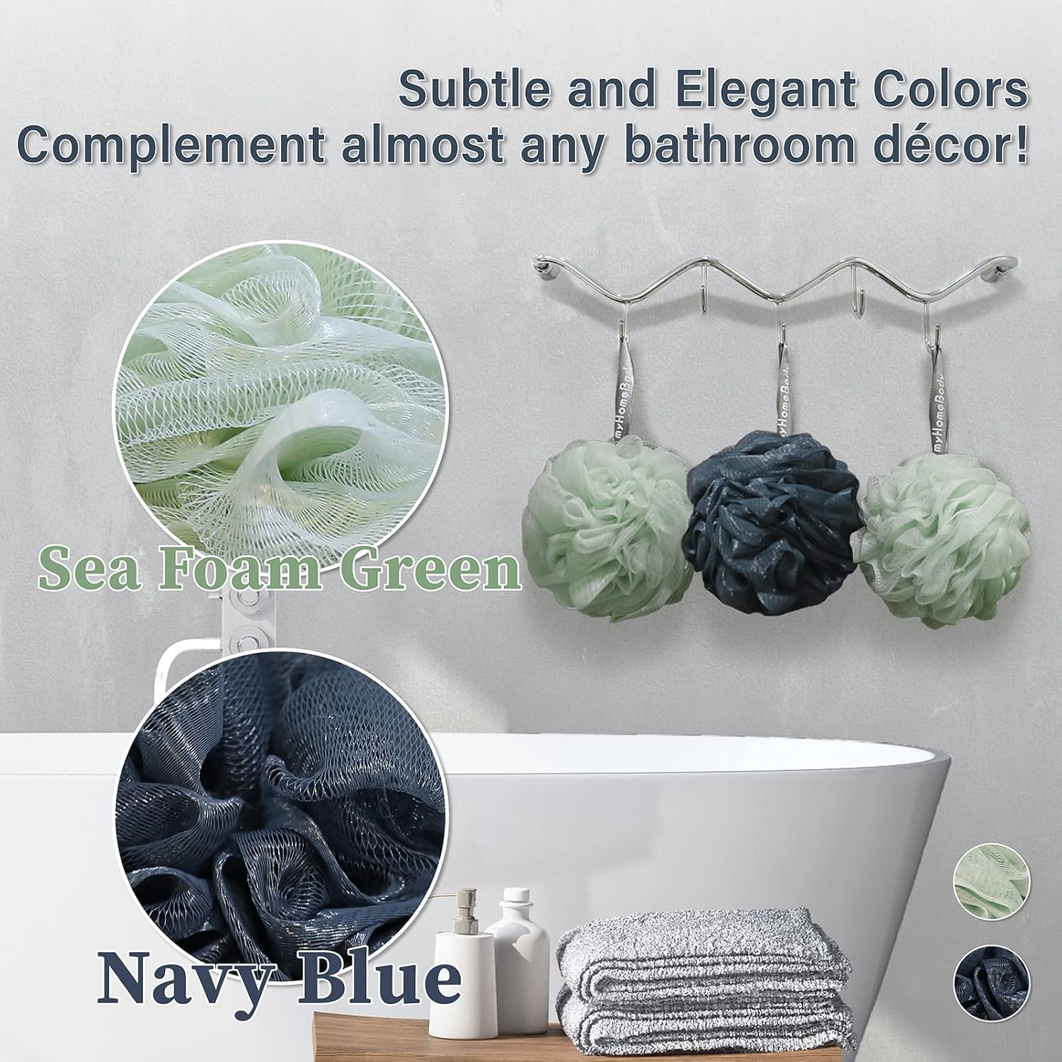 - Subtle and Elegant Colors suit almost any Bathroom Decor! Great Shower Sponges for Women, Men or Teens!