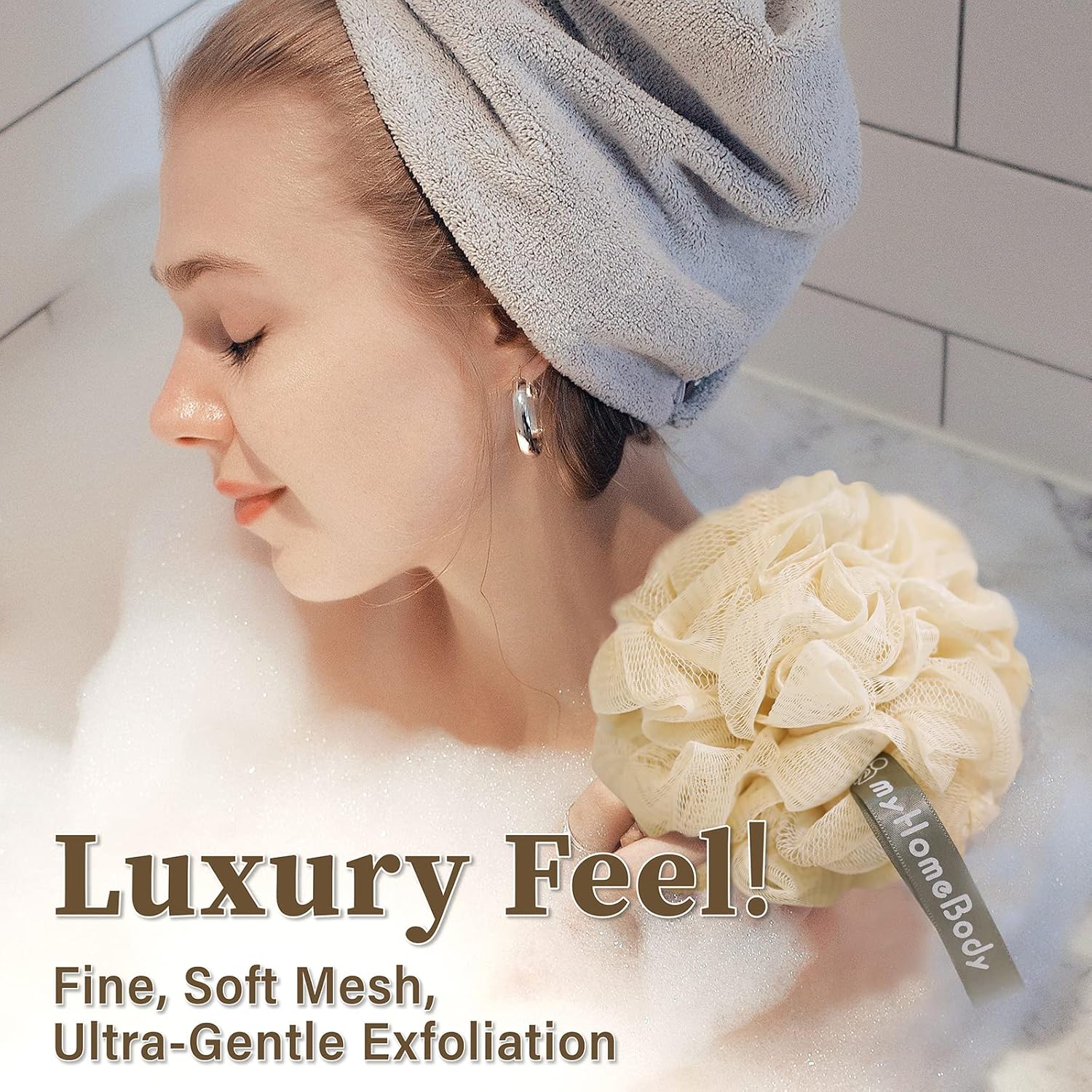 - Generously Sized at 70g, the myHomeBody Luxury Shower Pouf Fills Your Hand and Creates a Cloud of Rich Lather.