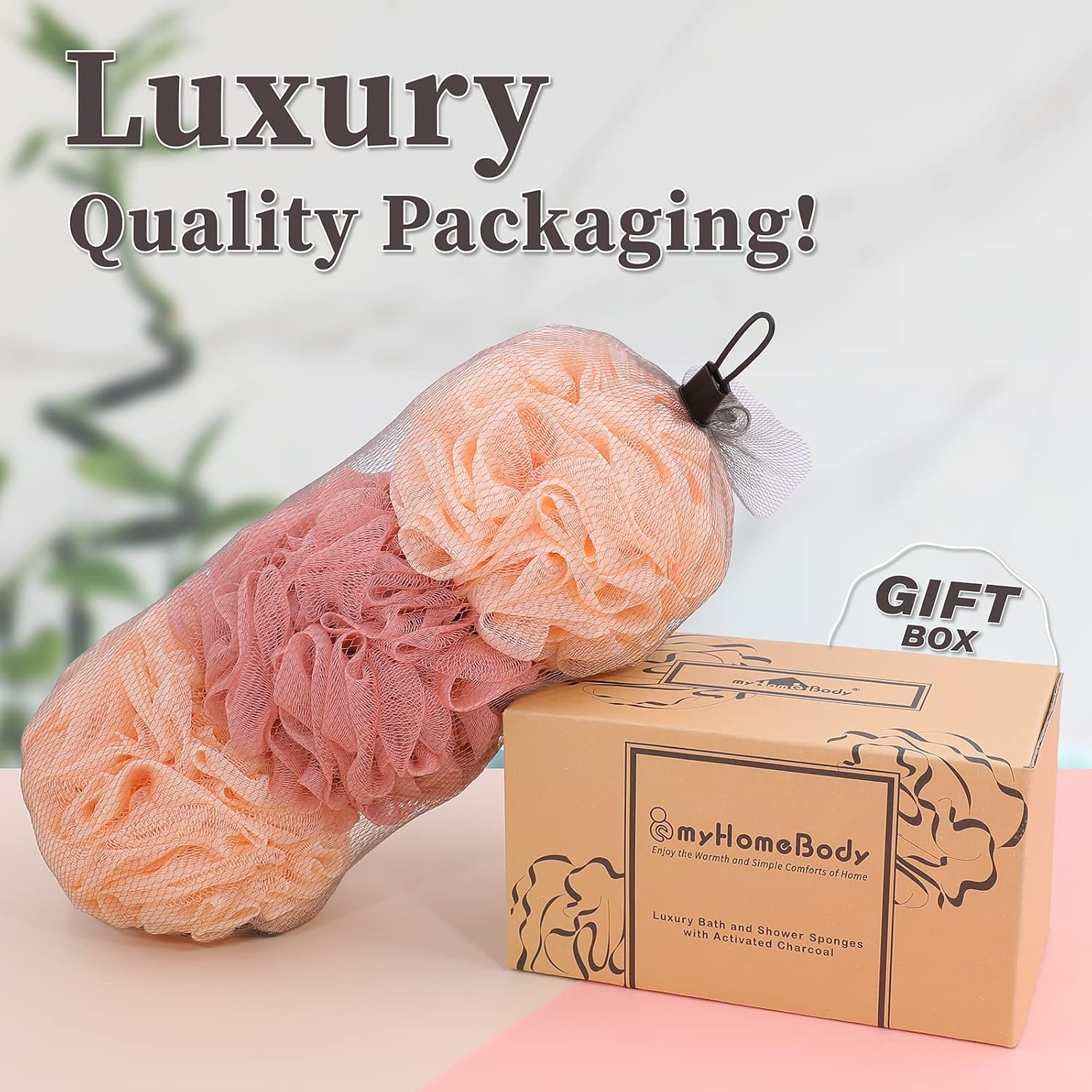 - myHomeBody Luxury Mesh Exfoliating Body Sponge is Made from High Quality PE and Infused with Activated Charcoal Powder