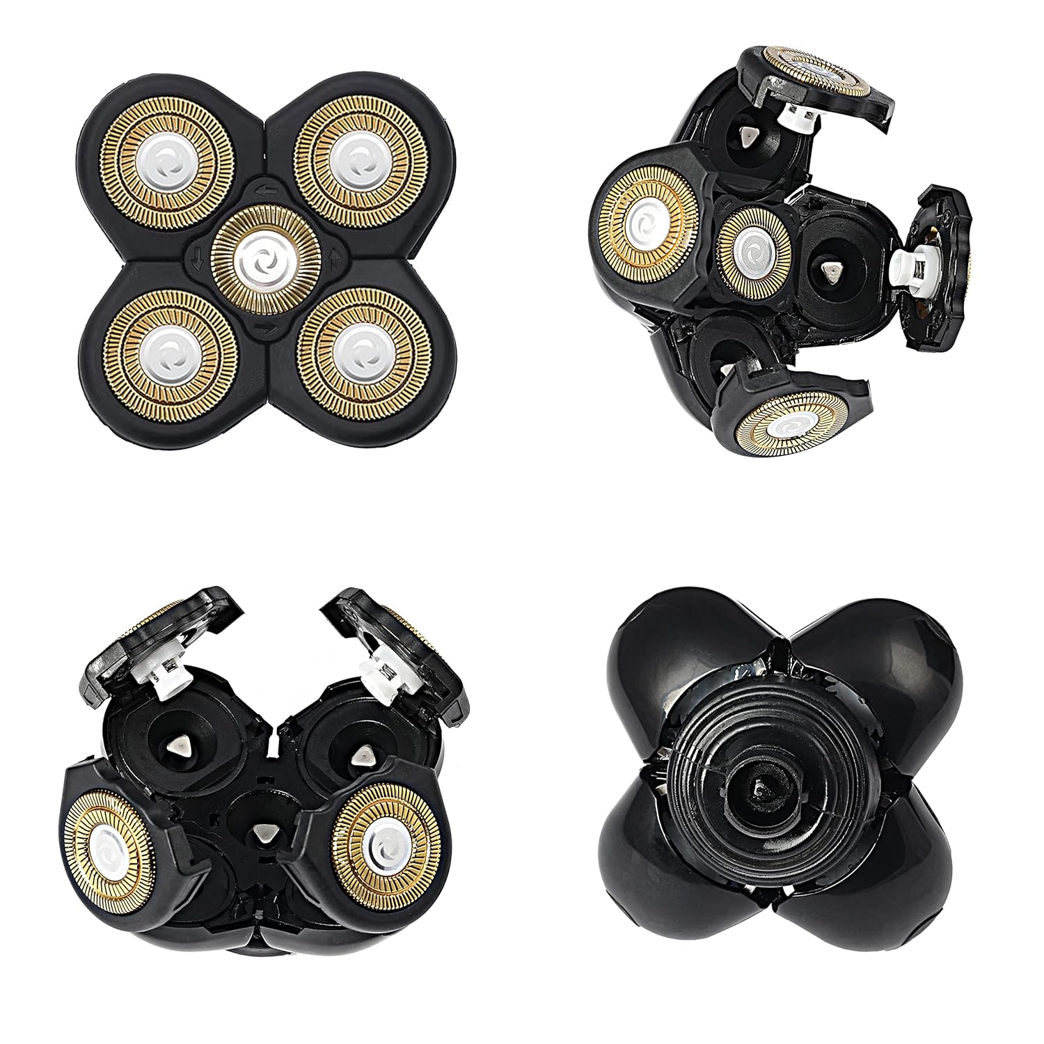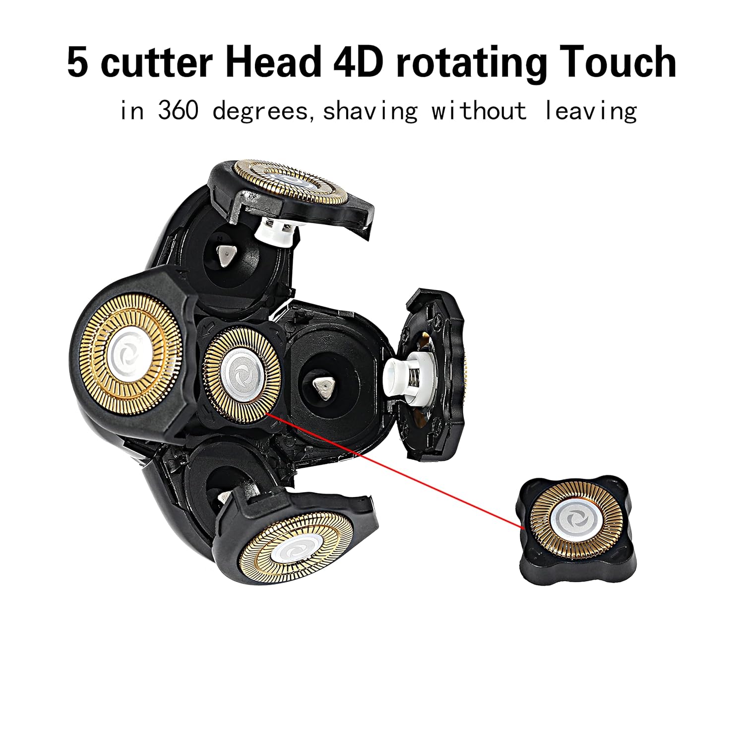 5D Men's Electric Shaver Replacement Heads Bald Replacement Heads Replacement 5 Heads Razor Blades Wet and Dry Compatible Waterproof with Blade Cover(Gold)