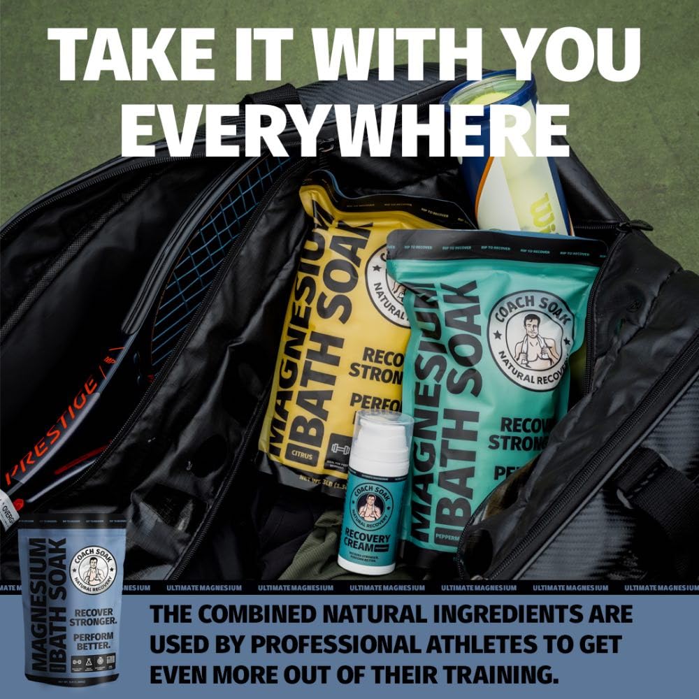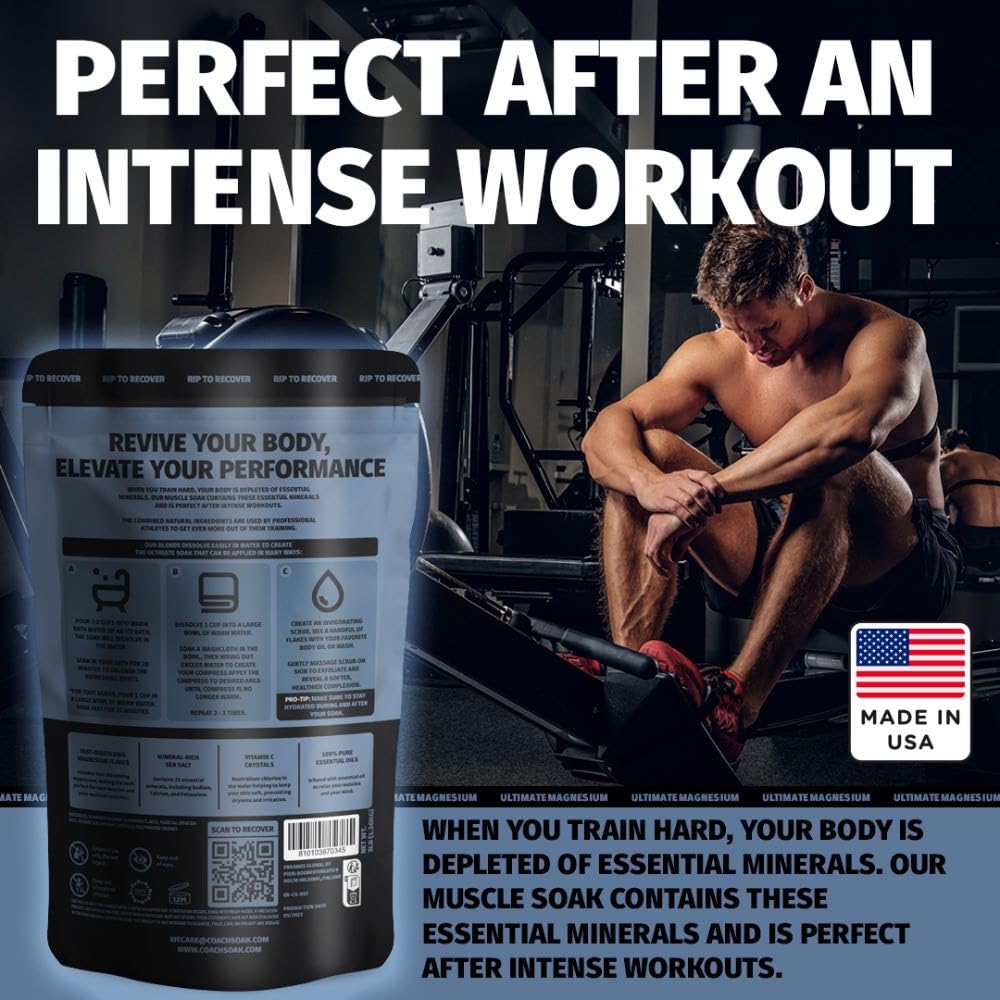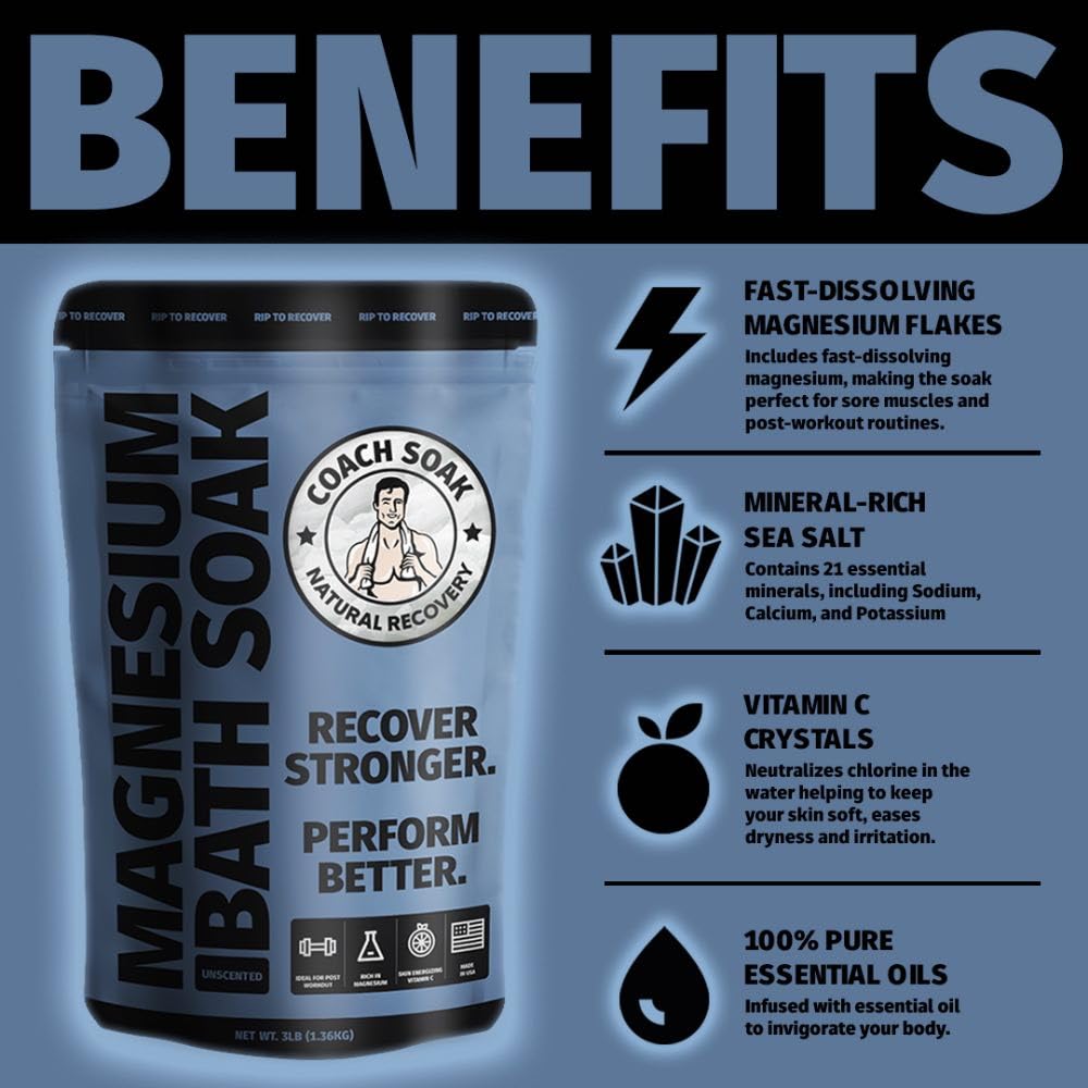 Coach Soak Recovery Bath Soak - Alternative to Epsom Salt Bath Soak - Fast-Absorbing Pure Magnesium Flakes with 21 Minerals, Bath Salts & Essential Oils - 3 lb (1 Pack) - Unscented