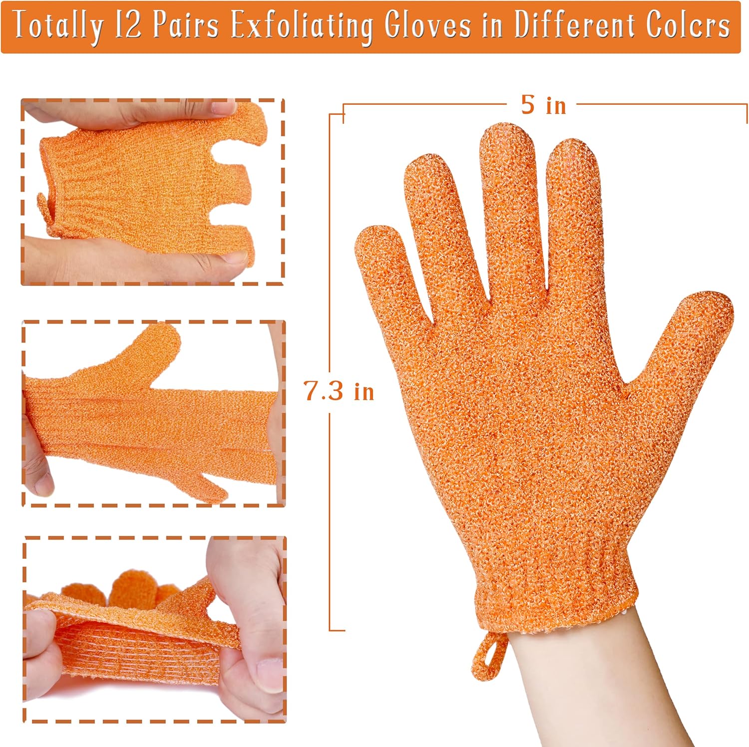- Body Scrub Gloves with Hanging Loop:12 pairs Exfoliating Shower Gloves,24 pcs gloves total.