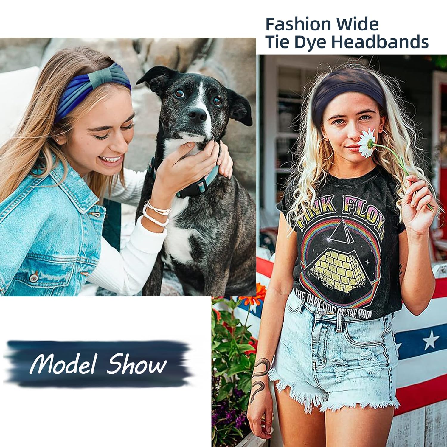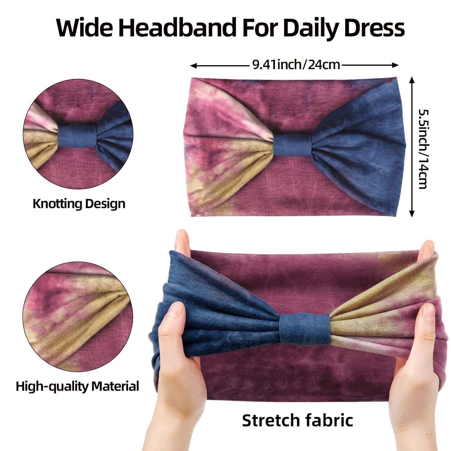 Wide Headbands for Women Tie Dye Head Wraps Boho Thick Hairbands Large African Sport Yoga Turban Headband Hair Accessories (Pack of 4)