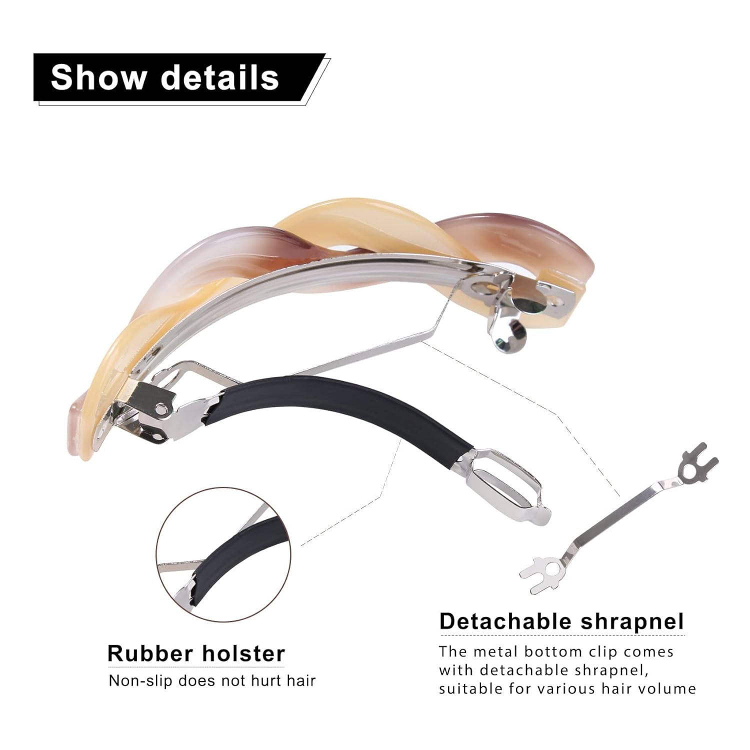 - 【CHIC DESIGN & MATERIAL】 Classic tortoise shell pattern compliments your daily outfit and special occasions as well,make you hair style charmer and elegant. The springs are made of high quality acrylic that endures daily wear. And the anti-slip design makes it hold your hair in place.