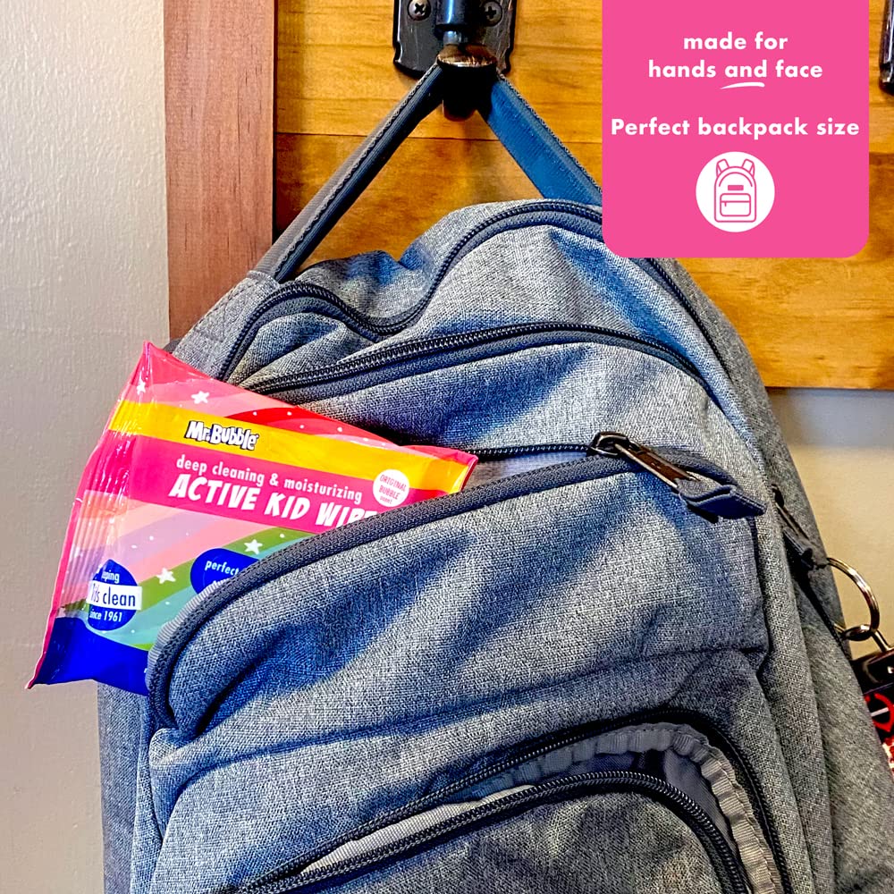- TRAVEL-SIZE HEALTHY HYGIENE: Easily fit a pouch of Mr. Bubble cleansing hand and face wipes into school backpacks, purses, hiking waist packs, or any personal bag. Their compact size makes staying clean on-the-go simple, easy and enjoyable.