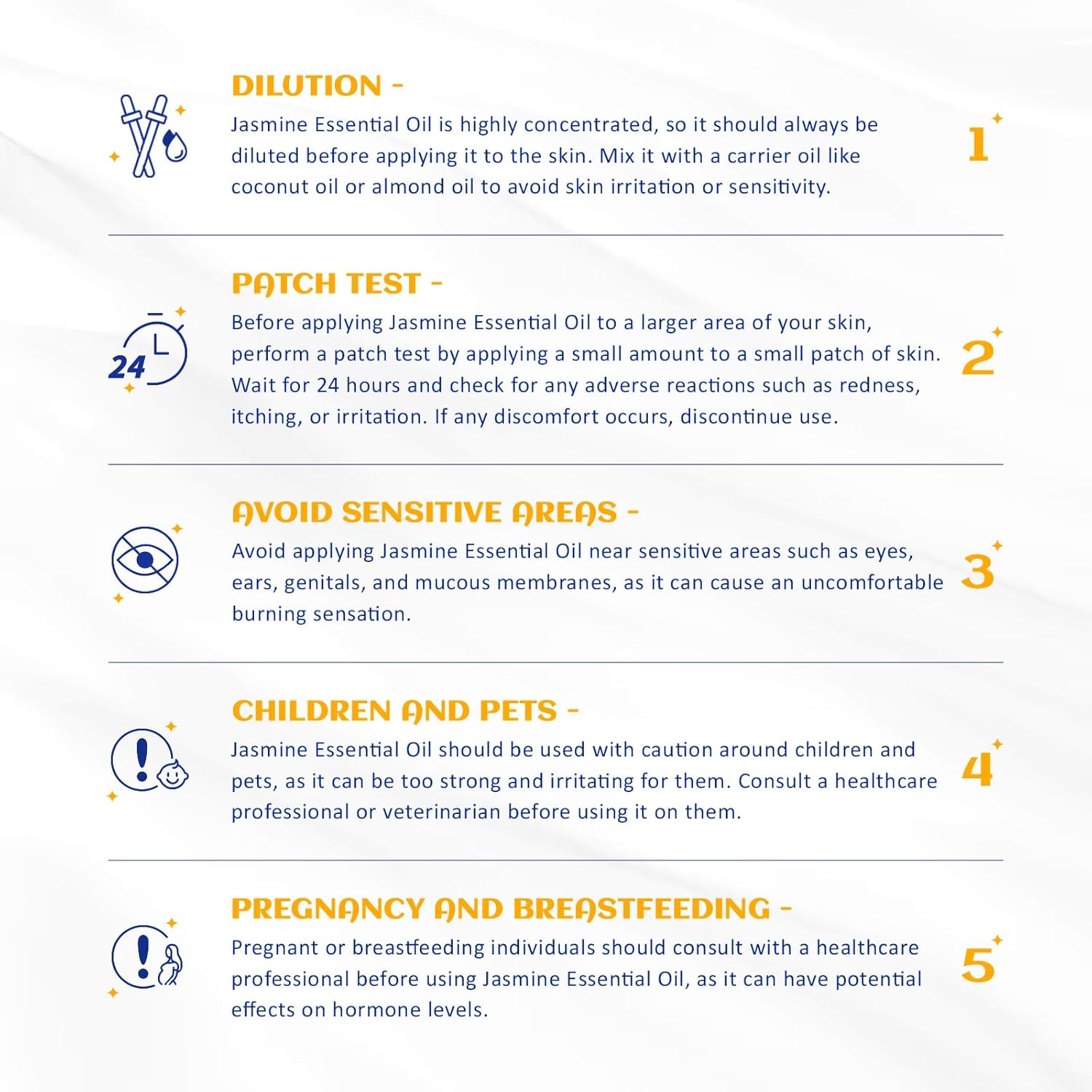 - Quality & Safety: All HIQILI oils have undergone multiple rounds of GC/MS testing by multiple third-party laboratories, the result is 100% pure natural. Diluted jasmine essential first before applying it on skin
