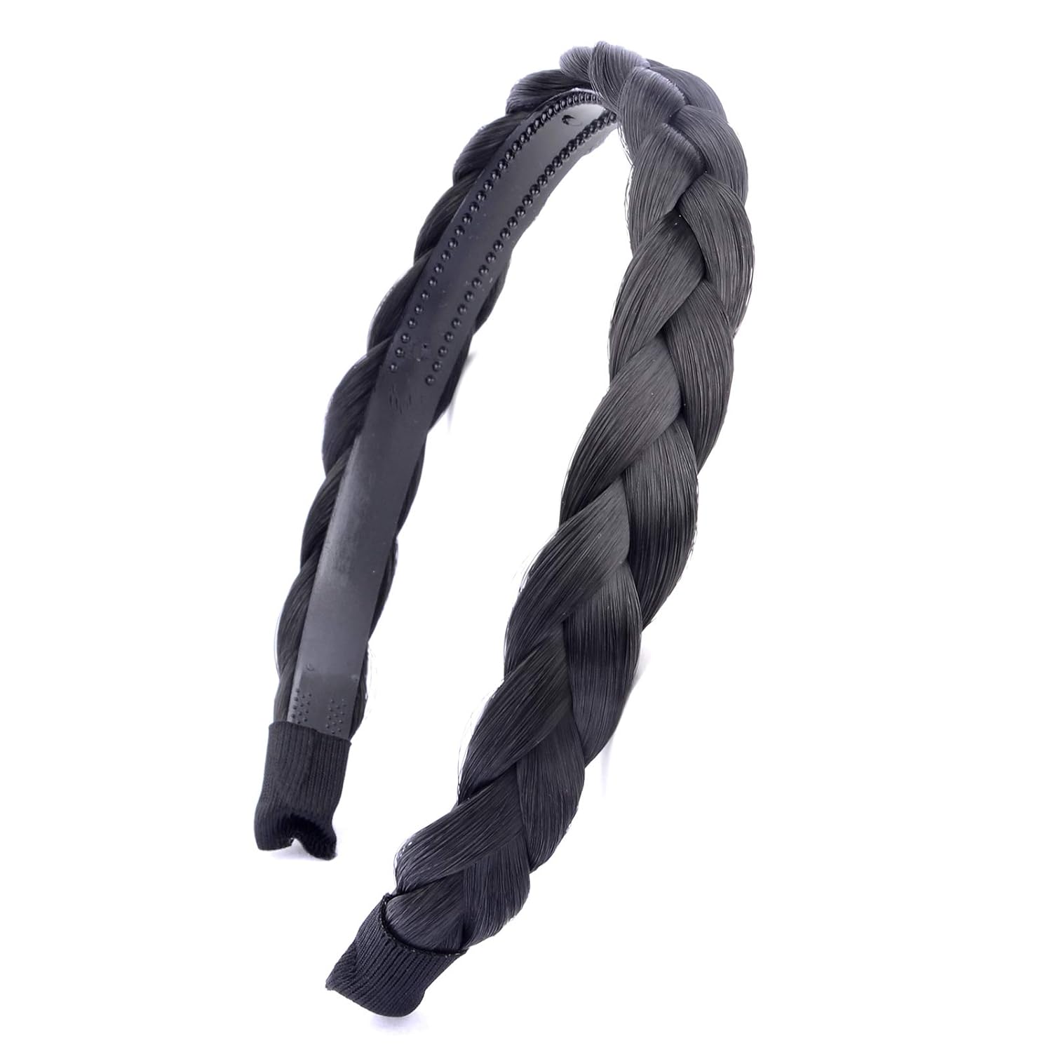 DIGUAN Width 0.6 inches Narrow Synthetic Hair Plaited Headband Braid With Teeth Hair Band Accessories for Women Girl (Natural Black)