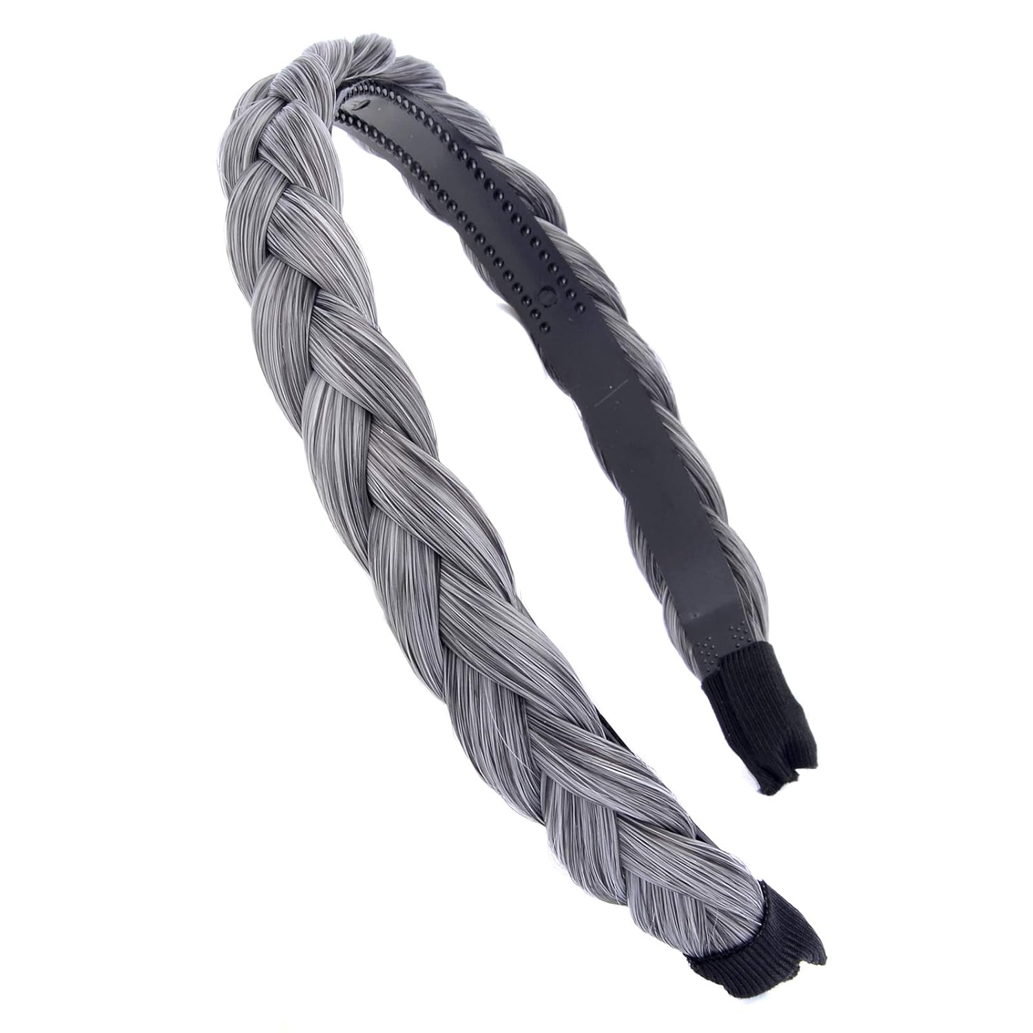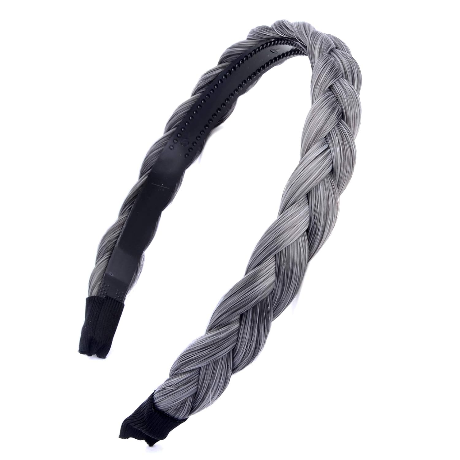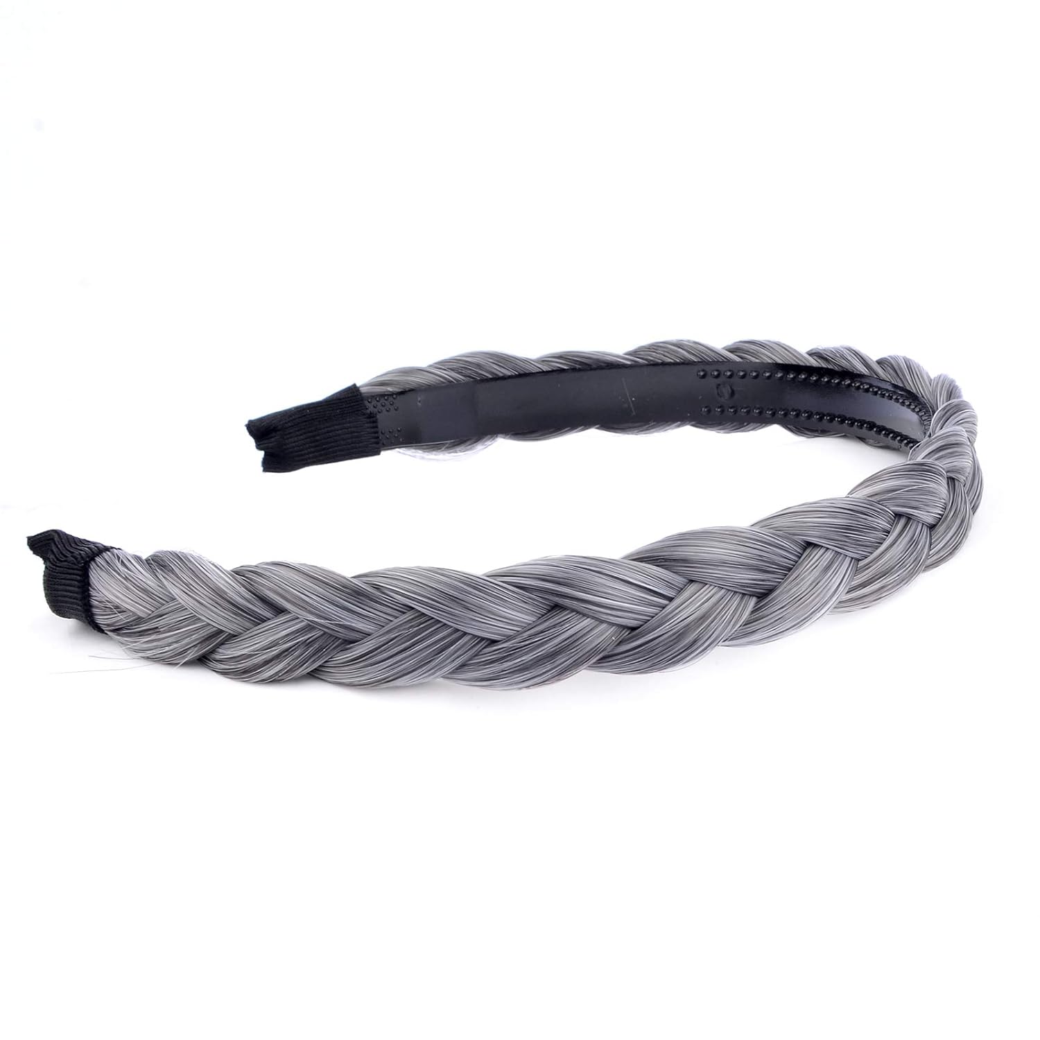 DIGUAN Width 0.6 inches Narrow Synthetic Hair Plaited Headband Braid With Teeth Hair Band Accessories for Women Girl (Dark Gray)