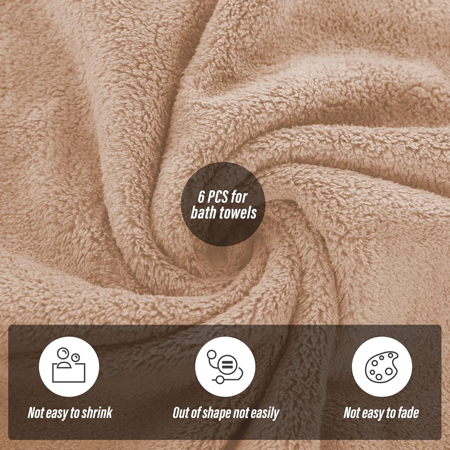 MOONQUEEN 6 Pack Premium Bath Towel Set - Quick Drying - Microfiber Coral Velvet Highly Absorbent Towels - Multipurpose Use as Bath Fitness, Bathroom, Shower, Sports, Yoga Towel (Brown)