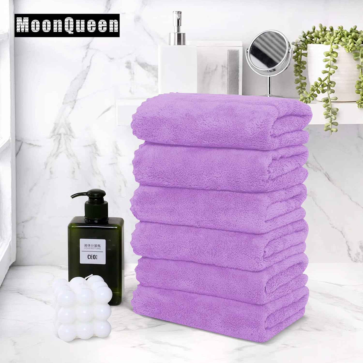 MOONQUEEN 6 Pack Premium Hand Towels - Quick Drying - Microfiber Coral Velvet Highly Absorbent Towels - Multipurpose Use as Hotel, Bathroom, Shower, Spa, Hand Towel 16 x 28 inches (Purple)