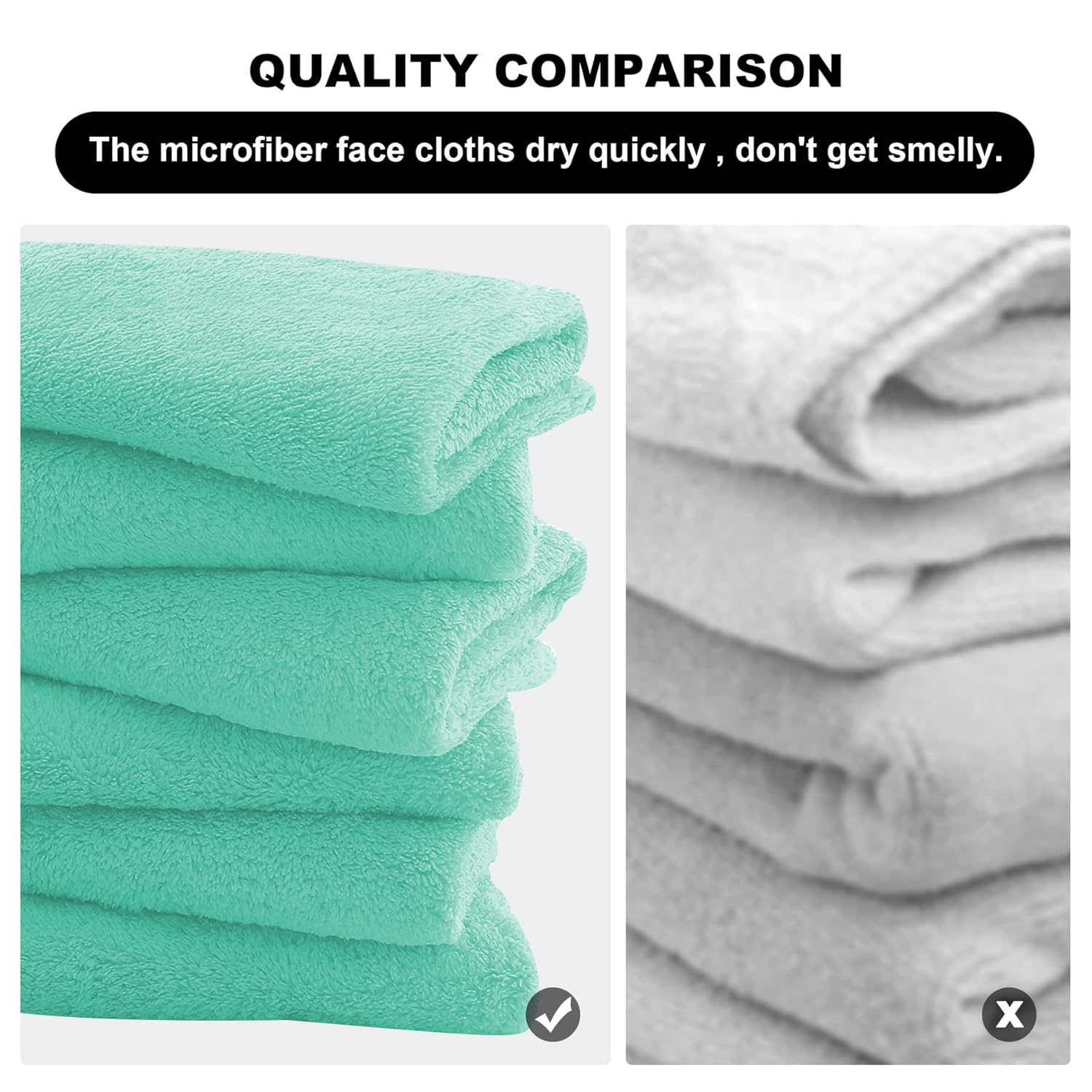 MOONQUEEN Microfiber Facial Cloths Fast Drying Washcloth 12 Pack - Premium Soft Makeup Remover Cloths - Aqua Green