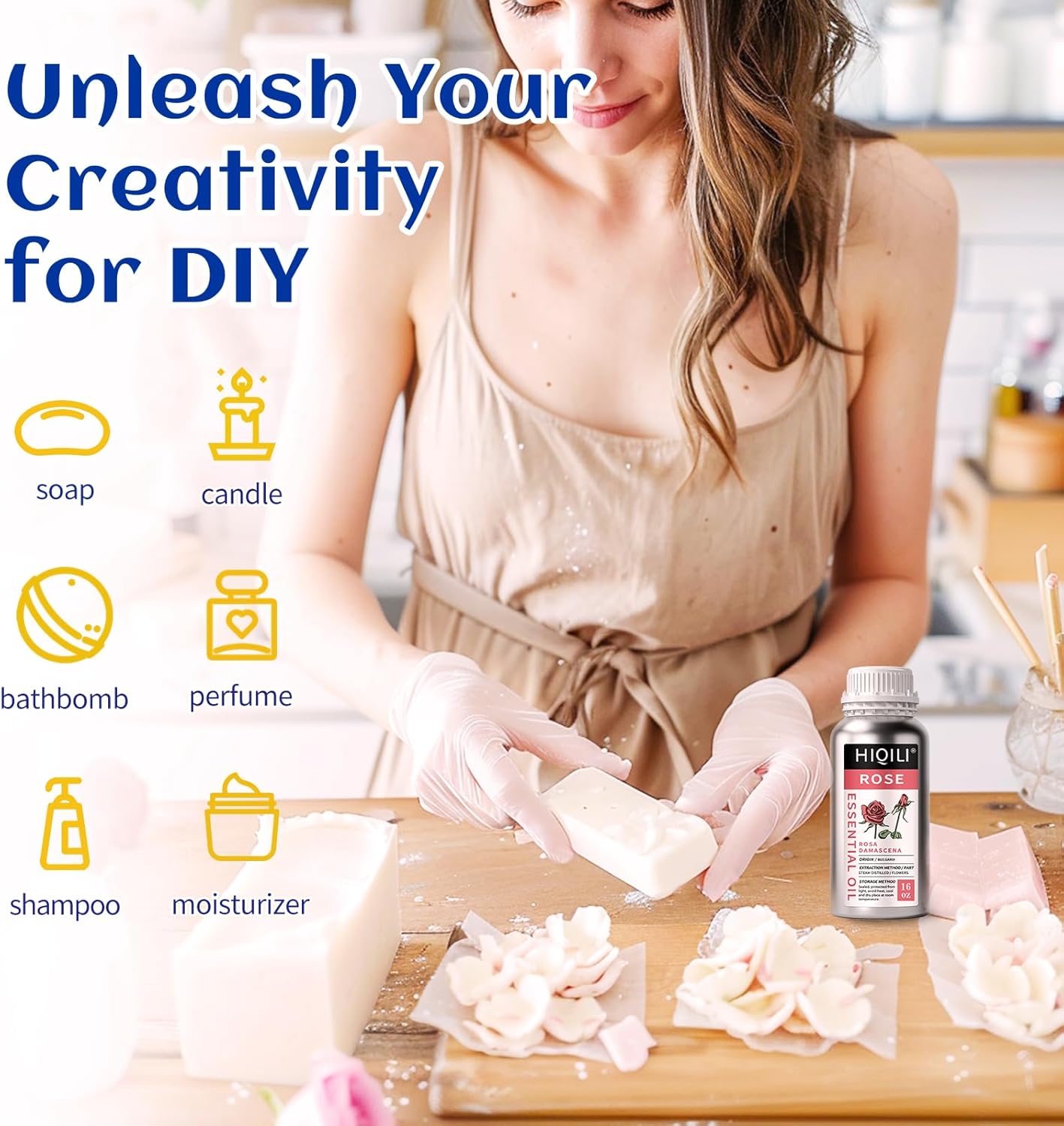 - DIY: Add rose essential oil to candles, aromatherapy lamps, conditioners, shampoos, massage oils, diffusers, cleansers, sprays, laundry detergents, cleansers, body lotions, creams, serums, bath salts, perfumes, soaps