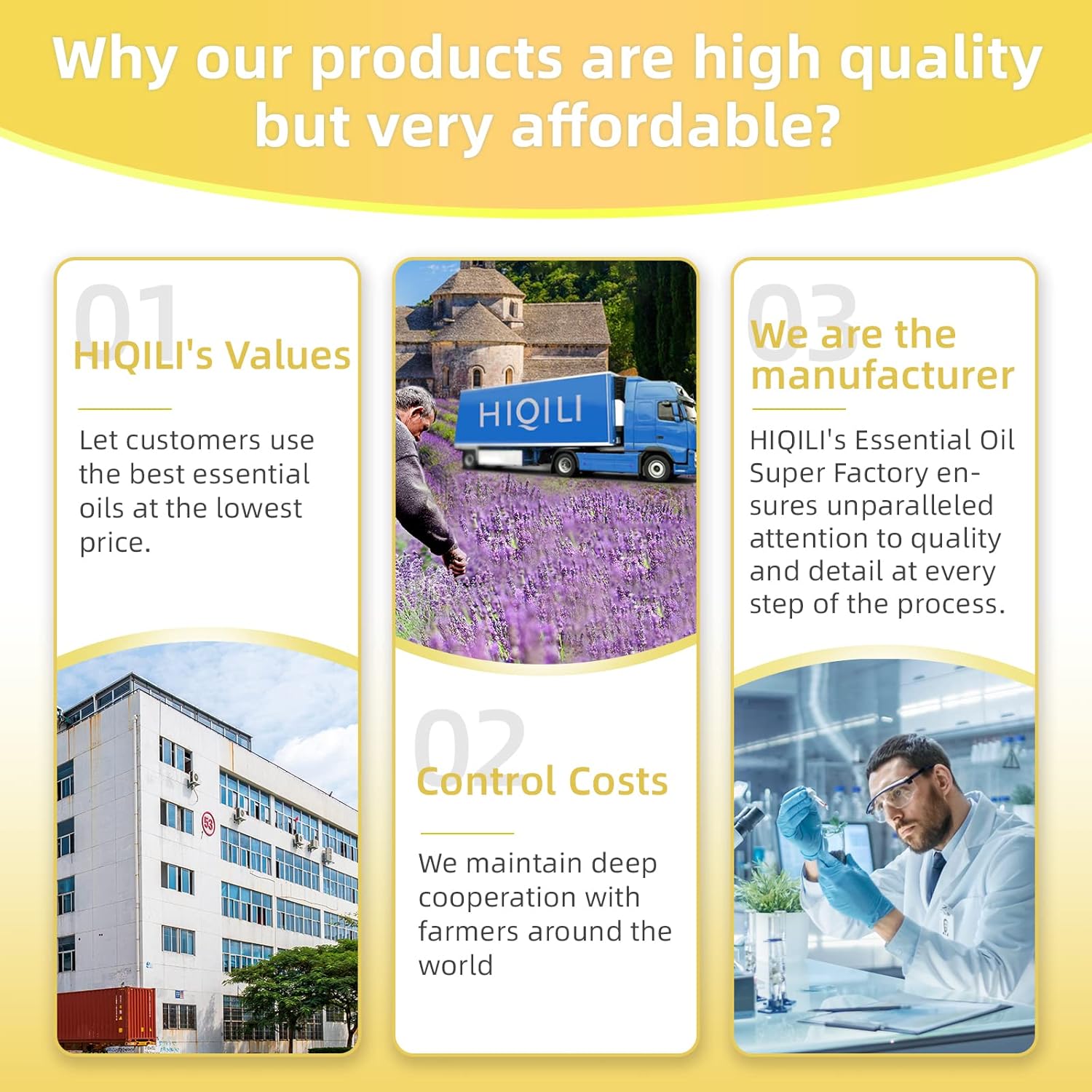- About HIQILI: We work with farmers in more than 30 countries around the world on sustainable development, by providing highly cost-effective plant essential oils to meet today's consumer needs.