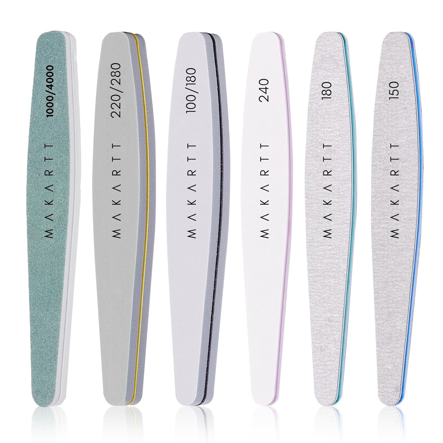 Makartt Nail Files and Buffers, 6 Pcs Emery Boards for Nails, Professional Double Sides Different Grit Fingernail File Polisher for Filing, Buffering & Polishing Manicure Kit