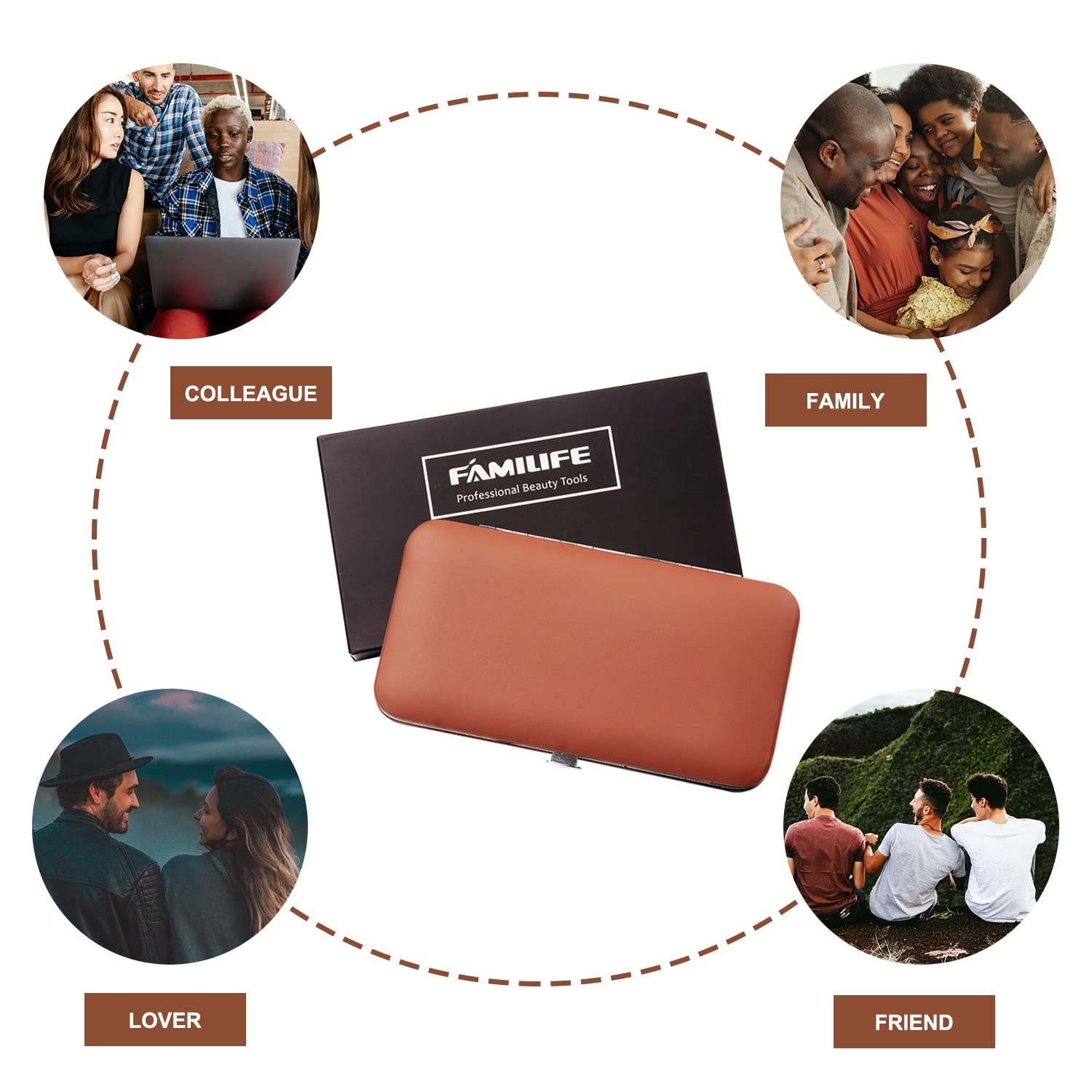 - 【GIFT IDEALS & UNIQUE GIFTS】: FAMILIFE 9-piece mens manicure set with brown luxury leather case and delicate gift box. The gift set perfect as birthday gifts for men, teacher gifts, boyfriend gifts, women gifts, dad gifts, best friend gifts, Christmas Gifts, Thanksgiving Gifts, Father's Day Gifts, Mother's Day Gifts, Thanksgiving Gifts, Valentine's Day Gifts and more