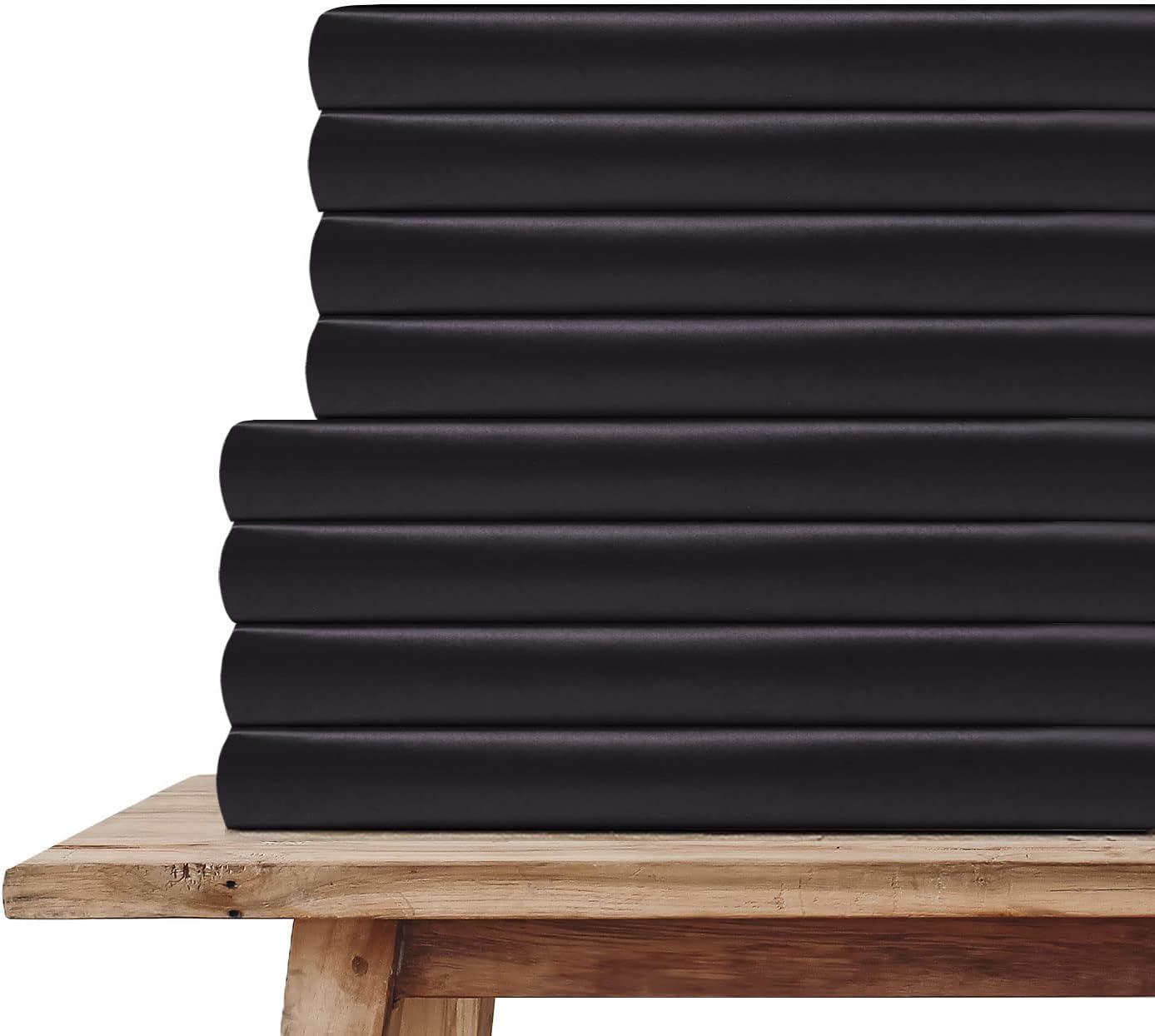 MR&HM Satin Pillowcase for Hair and Skin, Silk Satin Pillowcase 8 Pack, Queen Size Pillow Cases Set of 8, Silky Pillow Cover with Envelope Closure (20x30, Black)