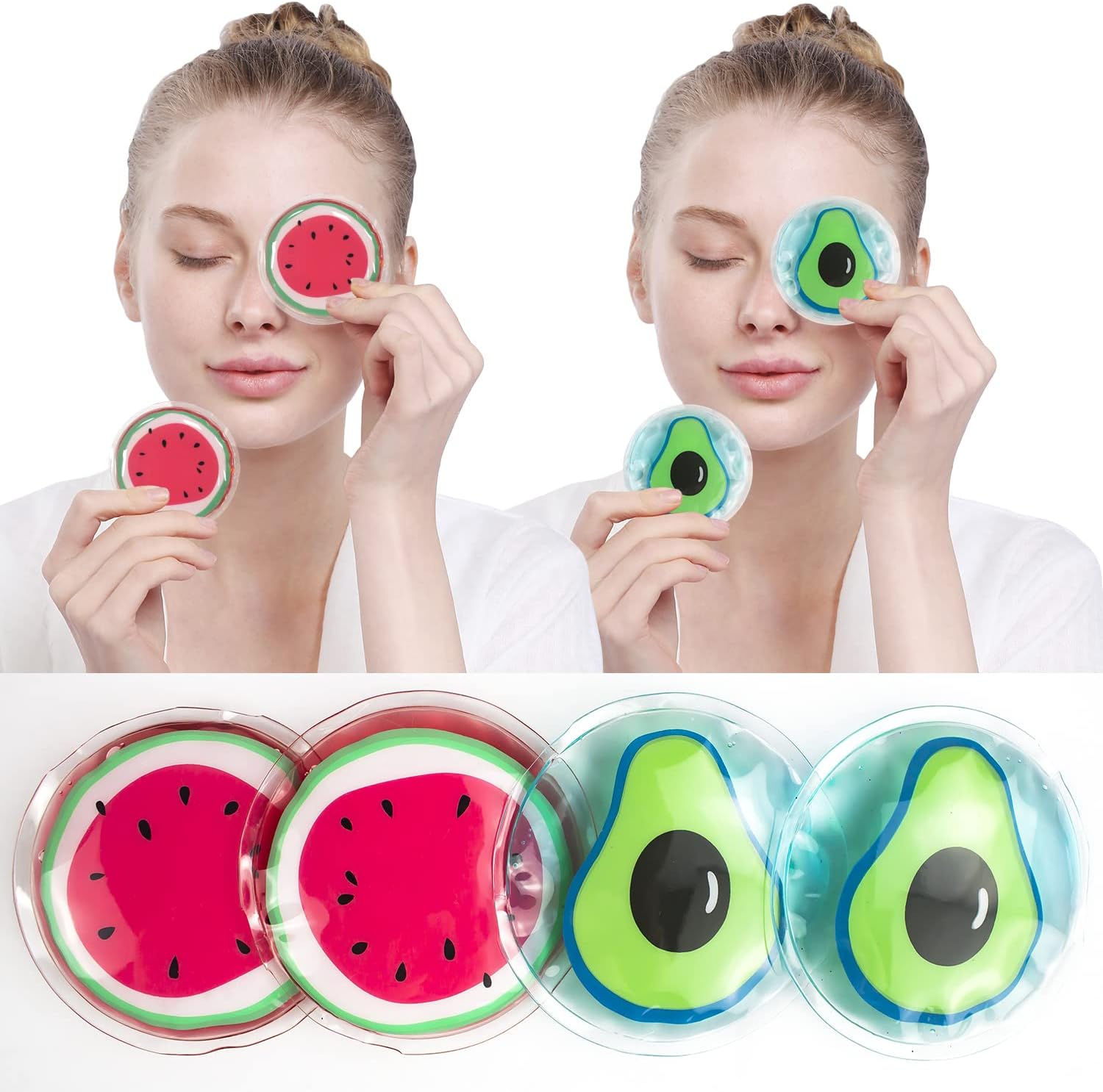 Hot and Cold Eye Pads, Reusable Eye Patches - Soothing, Revitalizing, Puffiness, Refresh, Relieves Stress, Relax, Relieves Puffiness and Tension(2 Watermelons + 2 Avocados)