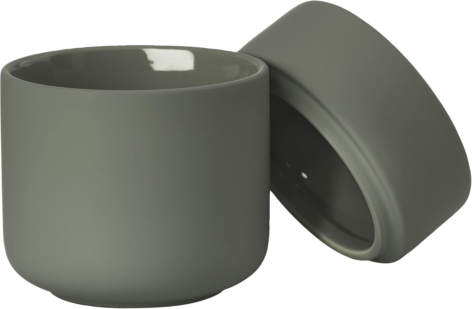 ZONE DENMARK Ume Taupe Cosmetic Jar - Elegant and Functional Storage Solution for Your Beauty Essentials, Infusing Scandinavian Design into Your Vanity Space (Olive Green)