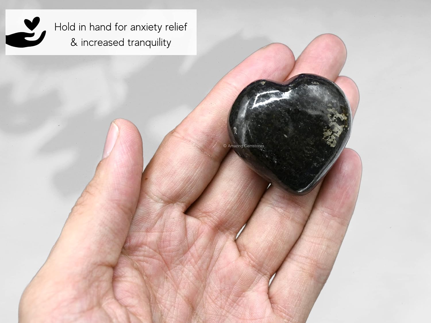 - Nuummite Crystal Heart Palm Worry Stones are polished heart shaped stones that can be used for Back, Neck, Face and Feet Massage therapy, Chakra Balancing, Reiki Healing, Crystal Grid Meditation and many other esoteric healing practices.