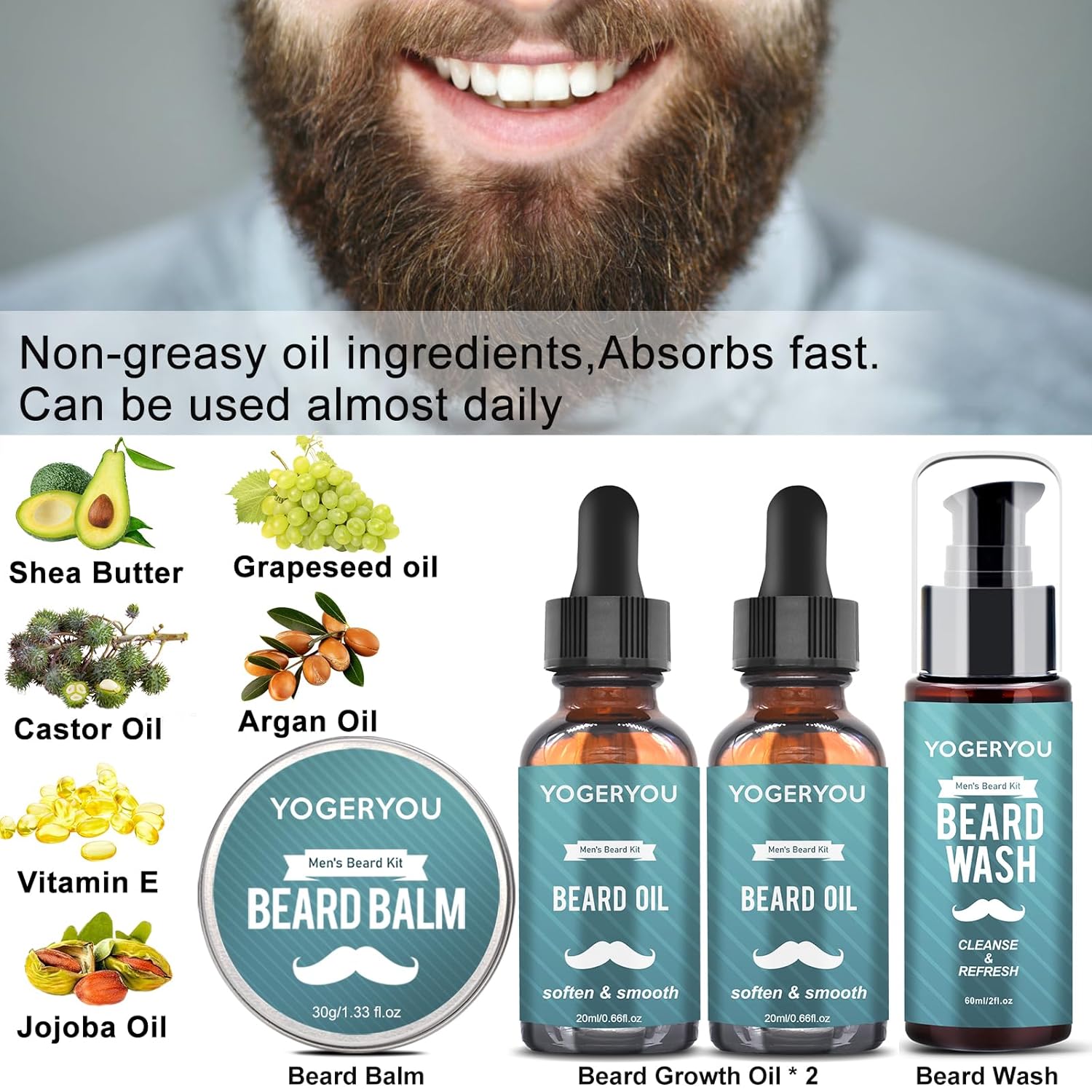 - PATCHY BEARD? NOT ENOUGH BEARD? - Are you struggling to have a full beard? This beard kit has the most effective combination tools for your beard care.The beard products with CASTOR OIL,ARGAN OIL work together with the tool which allows the oil to penetrate the skin underneath the beard,which not only nourish and softens the beard,but also improve the condition of skin under beard,making your facial hair/beard fuller and thicker over time.Unique Guy Gifts Idea.