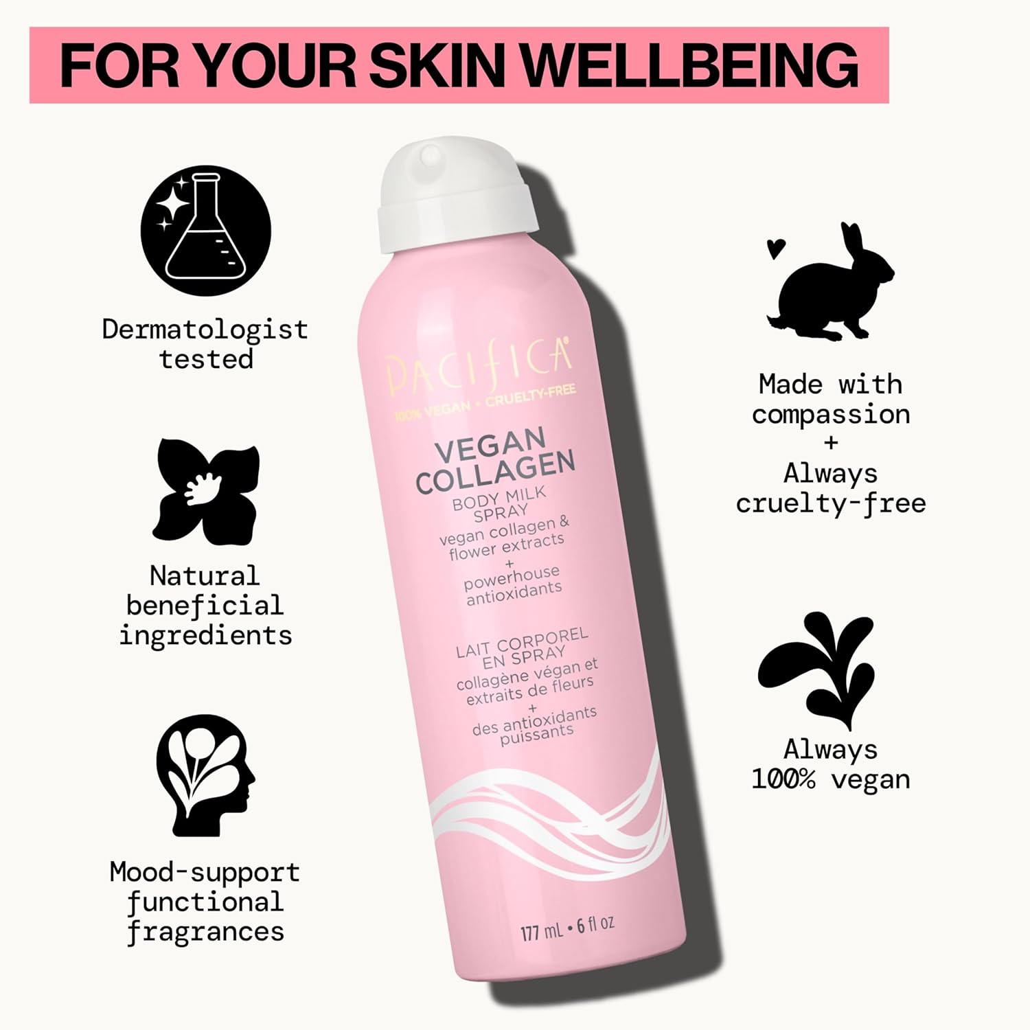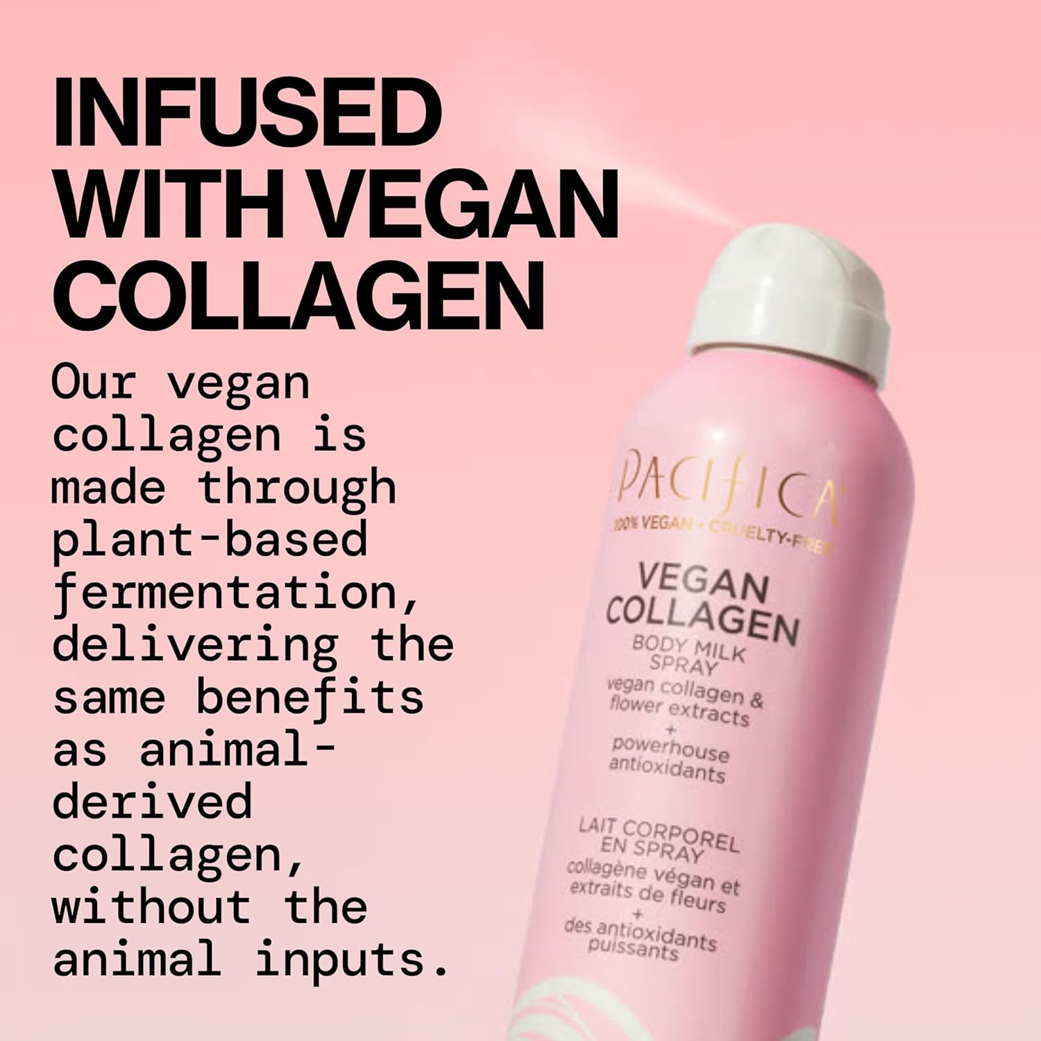 Pacifica Spray Lotion for Body - Vegan Collagen Body Milk Spray – Hydrating Moisturizer Mist Fast-Absorbing Instantly Hydrates & Softens Skin Jasmine & Vanilla Natural Scent Clean Beauty Non-Aerosol