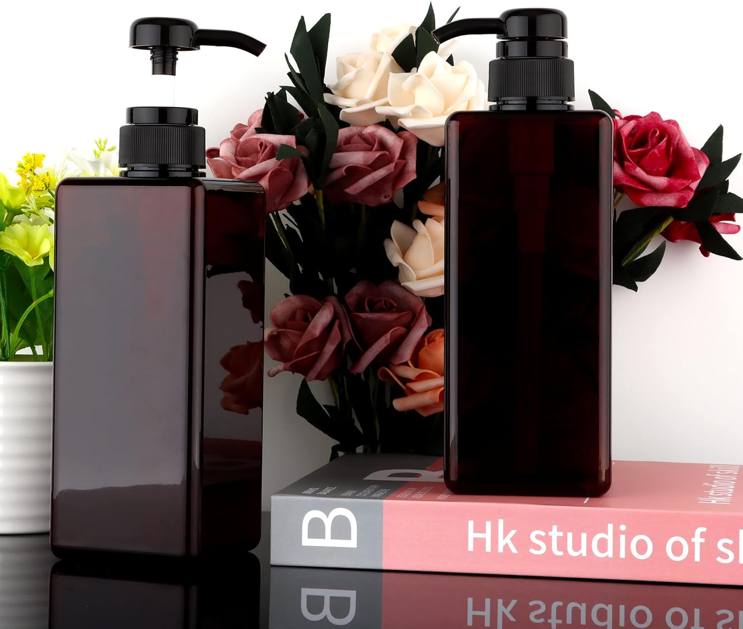 Pump Bottle Dispenser 22oz/650ml Jansburg 2Pack Refillable Square Plastic Lotion Dispenser Empty Lotion Pump Bottle for Essential Oil Lotion, Shampoo, Bathroom Travel Amber