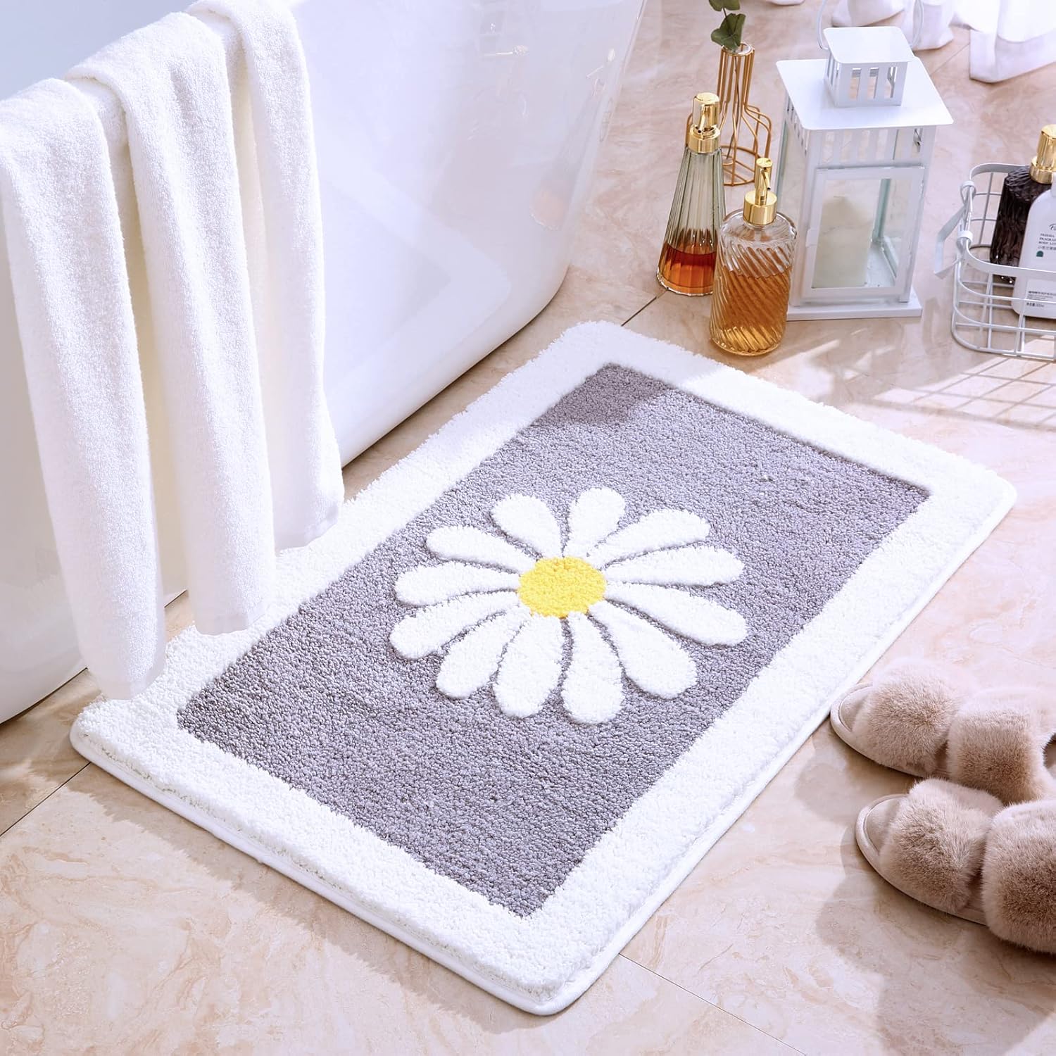 Bathroom Rugs, White Flower Fluffy Soft Superfine Fiber Rugs Non Slip Machine Wash Plush Bath Rugs for Bathroom Shower Room (20x32, Gray)